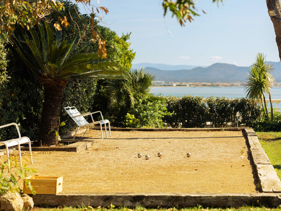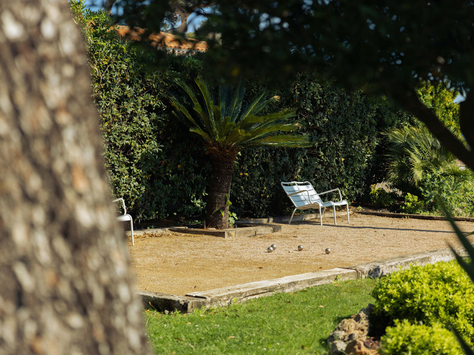 De villa is gelegen op een unieke lokatie, direkt aan de haven van St. Aygulf. De ingang van de villa is gelegen aan een rustige straat in een woonwijk, vlakbij zee en strand. Via de zijdeur voorin de tuin bent u vrijwel direkt bij zee en strand. De tuin loopt helemaal door tot aan de haven, is zeer groot (2800m2), omheind en aangelegd op verschillende niveaus. In een deel van de tuin kunt u zelfs voetballen.