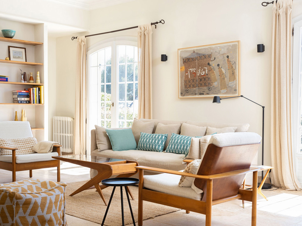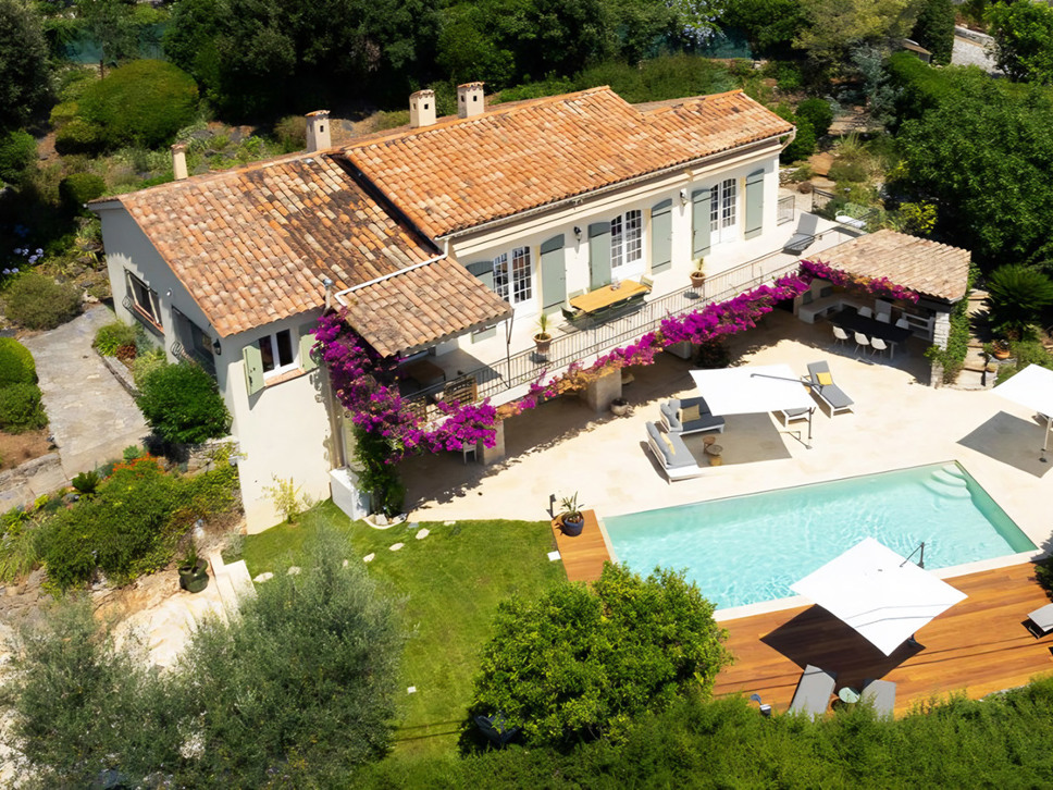 Luxe villa met privé zwembad op loopafstand van het geliefde kunstenaarsdorp St Paul de Vence, Côte d'Azur. Sfeervolle inrichting met Deense design klassiekers. Mooi en rustig op zuid gelegen, deels uitzicht op zee. Volledige geoutilleerde zomerkeuken. Geschikt voor 6 personen.