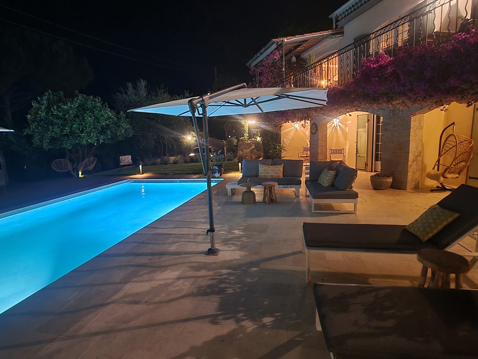 De villa ligt in de heuvels en heeft een vrij uitzicht op zee en Cap d’ Antibes. U bevindt zich hier in een rustig gebied. Wilt u echter naar het strand bij Antibes of Juan les Pins of het oude centrum van Nice, dan bent u daar snel, het dichtstbijzijnde strand ligt slechts op 8 km (Cagnes sur Mer) en Nice op ongeveer 19 km. Het vliegveld ligt op 13 km afstand van het huis.