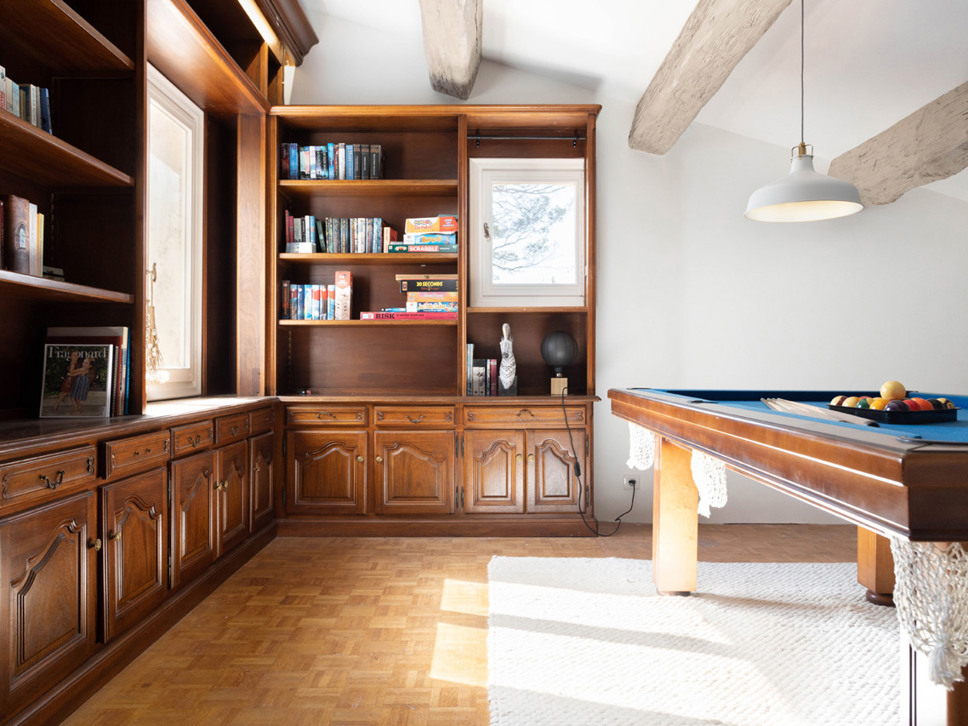 In de zithoek staat een Internet TV met Google Chromecast. Wifi is via glasvezel en dat is het beste dat u kunt krijgen in Zuid-Frankrijk. Erg leuk vinden we de speelkamer c.q. bibliotheek op de 1e verdieping. Een mooie kamer met een biljart en een tafelvoetbalspel.