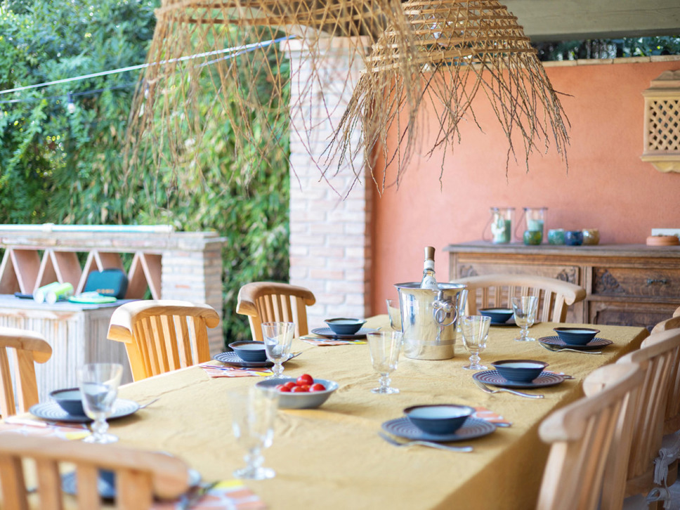 Je gaat waarschijnlijk ook veel tijd doorbrengen in het kleurrijke poolhouse. Hier staat ook een BBQ en een koelkast. De grote eettafel nodigt je uit voor lange lunches. Een tweede barbecue-plaats bevindt zich aan de achterzijde van de woning, grenzend aan de keuken.