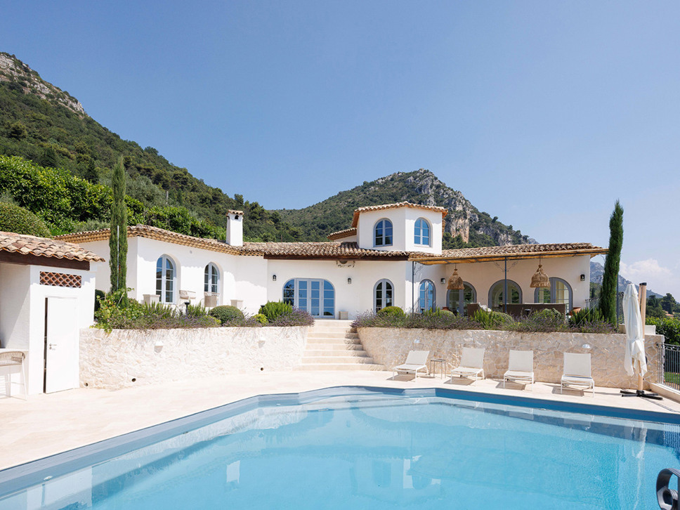 Exclusieve villa met royaal privézwembad te Vence, Côte d'Azur. Heerlijke pool en poolhouse. Indrukwekkende luxe zowel binnen als buiten. Zeer mooi zeezicht. De villa is geschikt voor 12 personen.