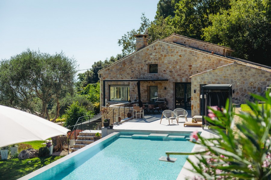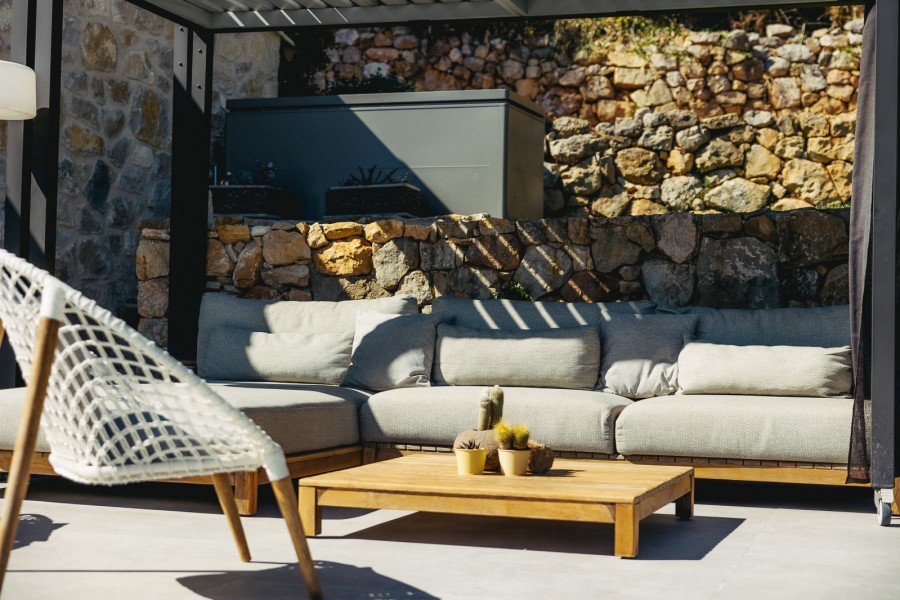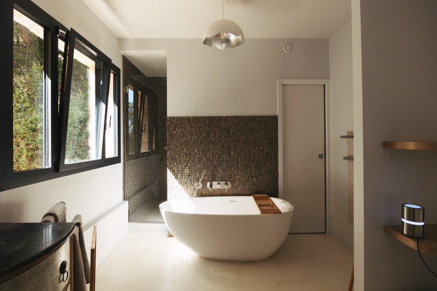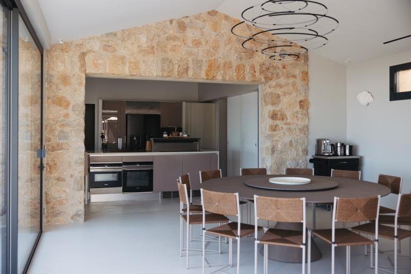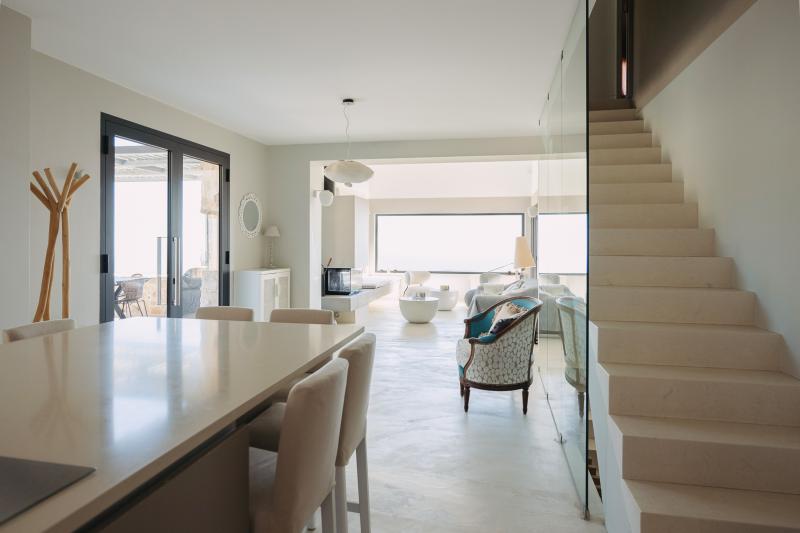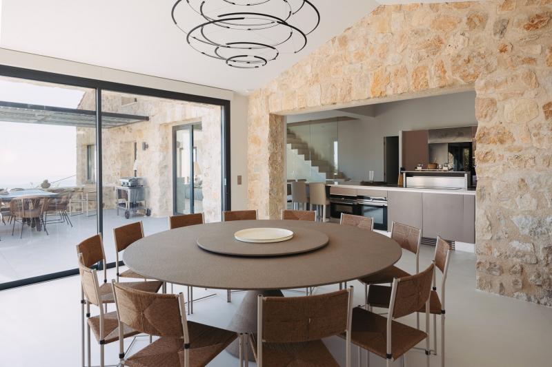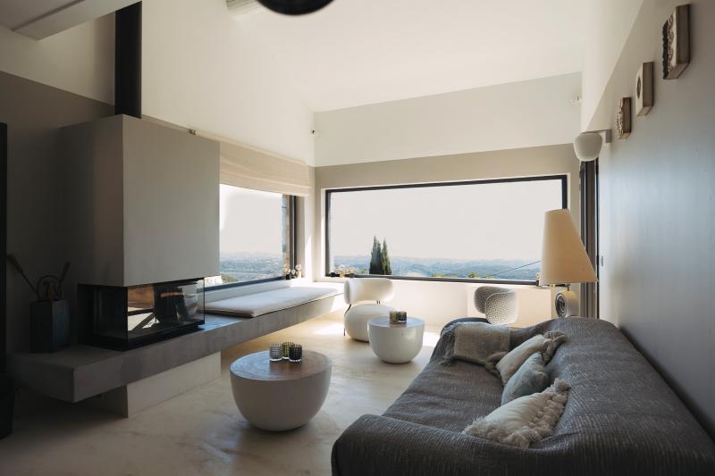 De living is eigentijds en luxe ingericht met meerdere fraaie zitmeubels en kunstvoorwerpen. Een open haard is aanwezig, leuk om hier tijdens het voor- en naseizoen gebruik van te maken. Vanuit de living heeft u een prachtig uitzicht op het landschap wat zich uitstrekt tot aan de Middellandse Zee.
