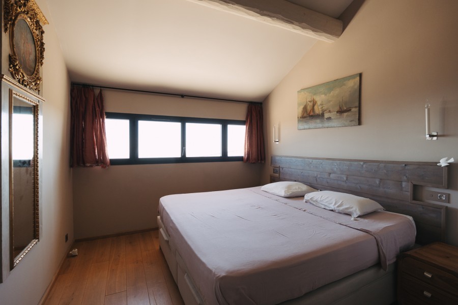 Slaapkamer 6 is een separate studio met privé badkamer gelegen bij het zwembad. Let op deze slaapkamer heeft een eigen entree. Deze slaapkamer is ideaal voor tieners die samen wensen te slapen. Er staan twee éénpersoonsbedden (2x90x200). De badkamer is en-suite (douche en W.C.).
