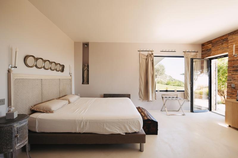 Slaapkamer 2 is voorzien van twee éénpersoonsbedden (2x90x200), welke tegen elkaar aangeschoven kunnen worden, en een en-suite badkamer (bad/douche en toilet). Vanuit deze slaapkamer heeft u ook toegang tot een privé terras en ook deze kamer biedt een fraai zicht op de tuin en Middellandse Zee.