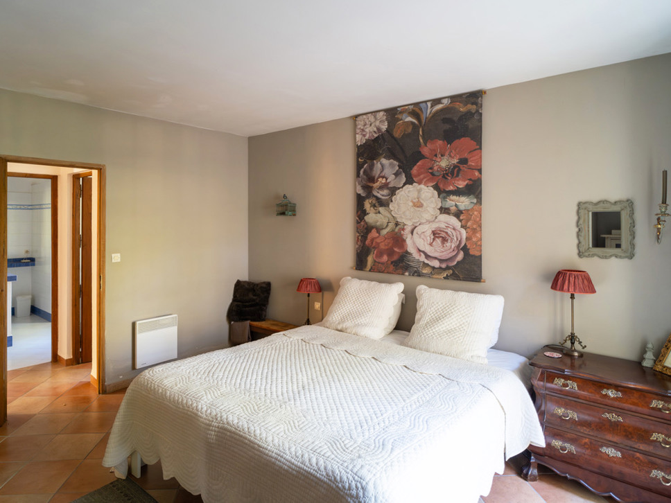 Slaapkamer 1 is op de begane grond en is de hoofdslaapkamer dankzij het royale karakter. De kamer beschikt over een tweepersoonsbed (180 x 200) en een en-suite badkamer met douche, dubbele wastafel en toilet. Vanuit de slaapkamer heeft u directe toegang tot de tuin. De slaapkamer heeft airconditioning.