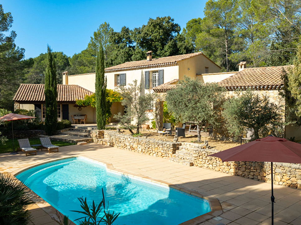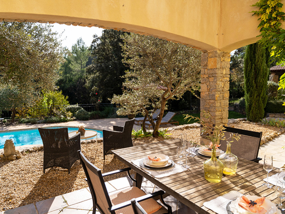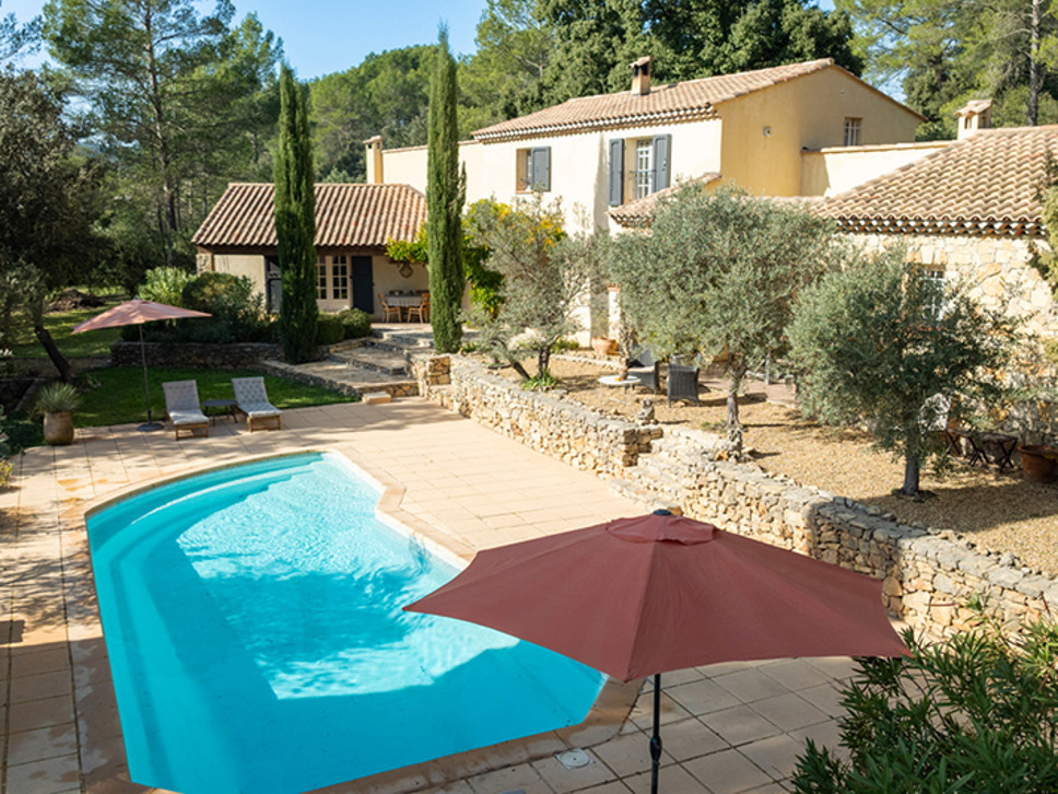 Comfortabele, vrijstaande villa in Cotignac, Provence. Privézwembad en royale natuurstenen terrassen. Veel ruimte voor de kinderen om te spelen. De villa is geschikt voor 6 personen.