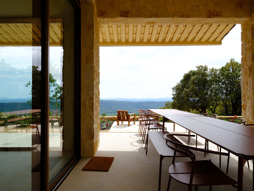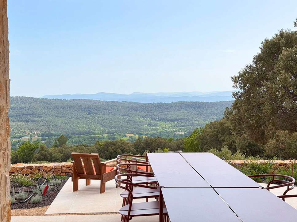 Wat een uitzicht biedt deze villa. Het interieur is ontworpen om maximaal te genieten van het panoramische decor van de Provence. Grote raampartijen omlijsten het glooiende landschap en creëren een heerlijk gevoel van ruimte en licht. De gehele villa is voorzien van airconditioning – aangenaam in elk seizoen.