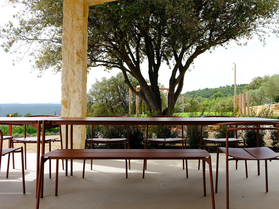 Op het uitgestrekte terrein zijn diverse terrassen gecreëerd, zowel in de zon als in de schaduw. Altijd is er wel een comfortabele plek om te ontspannen. Een van onze favoriete spots is het overdekte terras direct grenzend aan de keuken, met een eettafel voor zes personen. Hier begint u de dag met een vers kopje koffie én een uitzicht dat nooit verveelt.