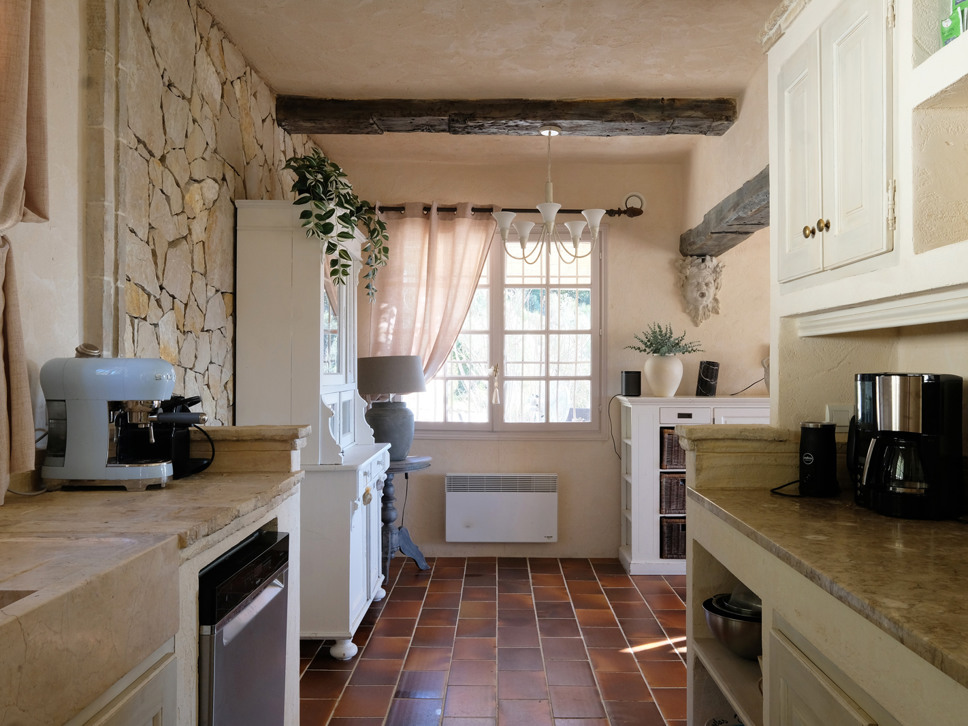 De sfeervolle Provençaalse keuken is van alle gemakken voorzien en uitstekend uitgerust. Aanwezig zijn onder andere een oven, inductiekookplaat, magnetron, koelkast met vriesvak en vaatwasser. Ook voor koffieliefhebbers is er zowel een filterkoffiezetapparaat als een espressomachine. Verder zijn een waterkoker, broodrooster en grill beschikbaar.