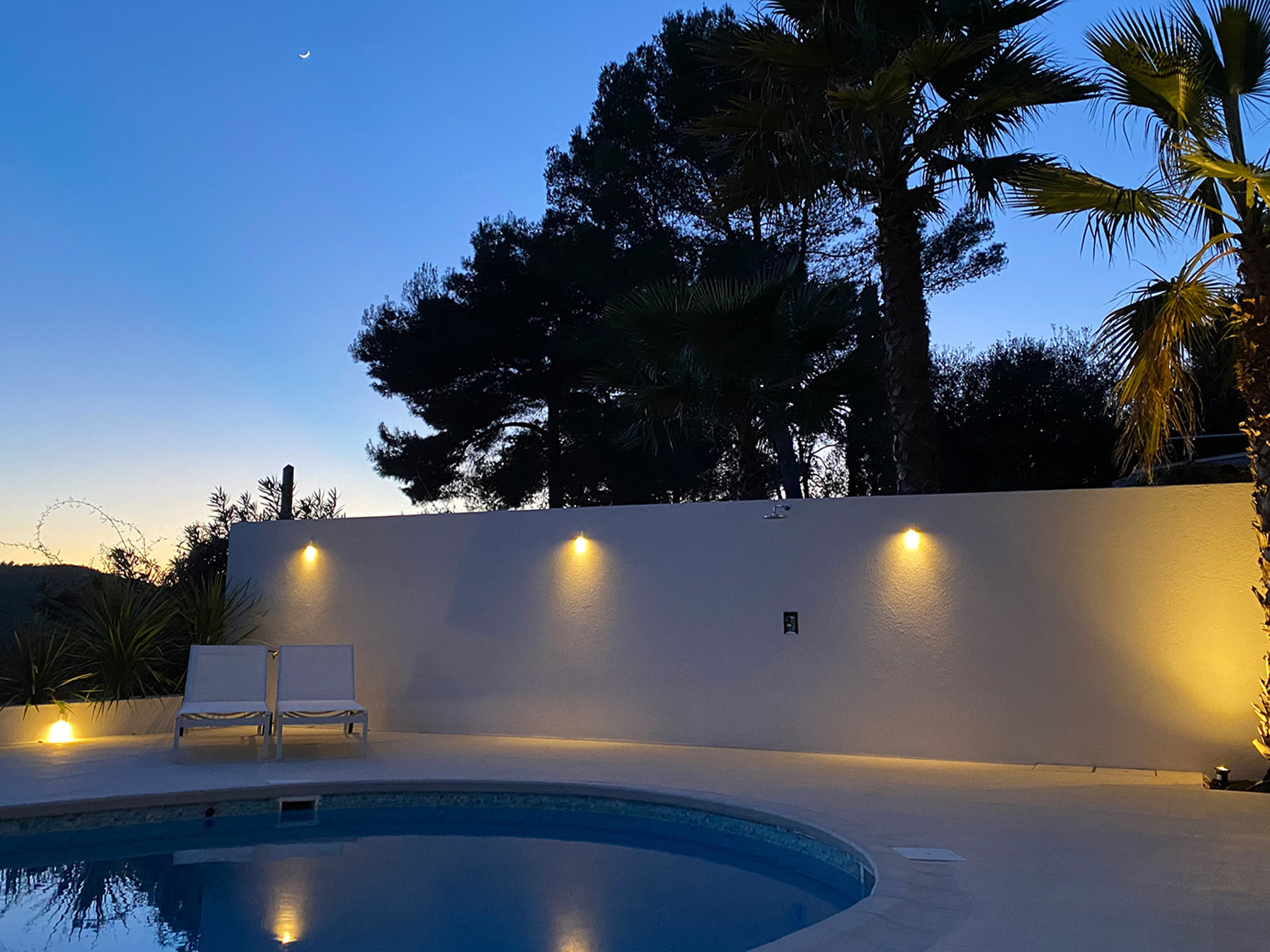 De woning is zeer rustig gelegen in een doodlopende straat in residentiële villawijk. U kijkt volledig vrij uit vanaf het terras en zwembad en living naar de groene onbebouwde heuvels van Biot.