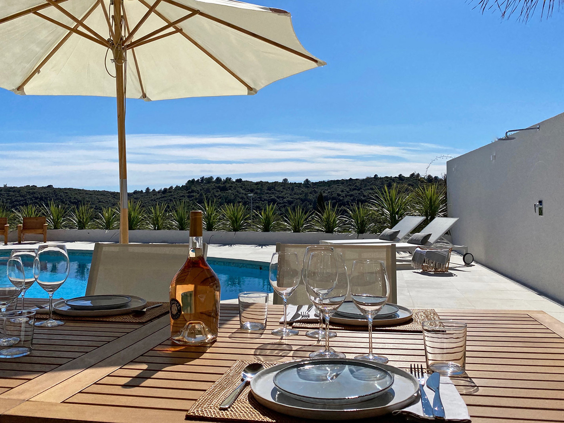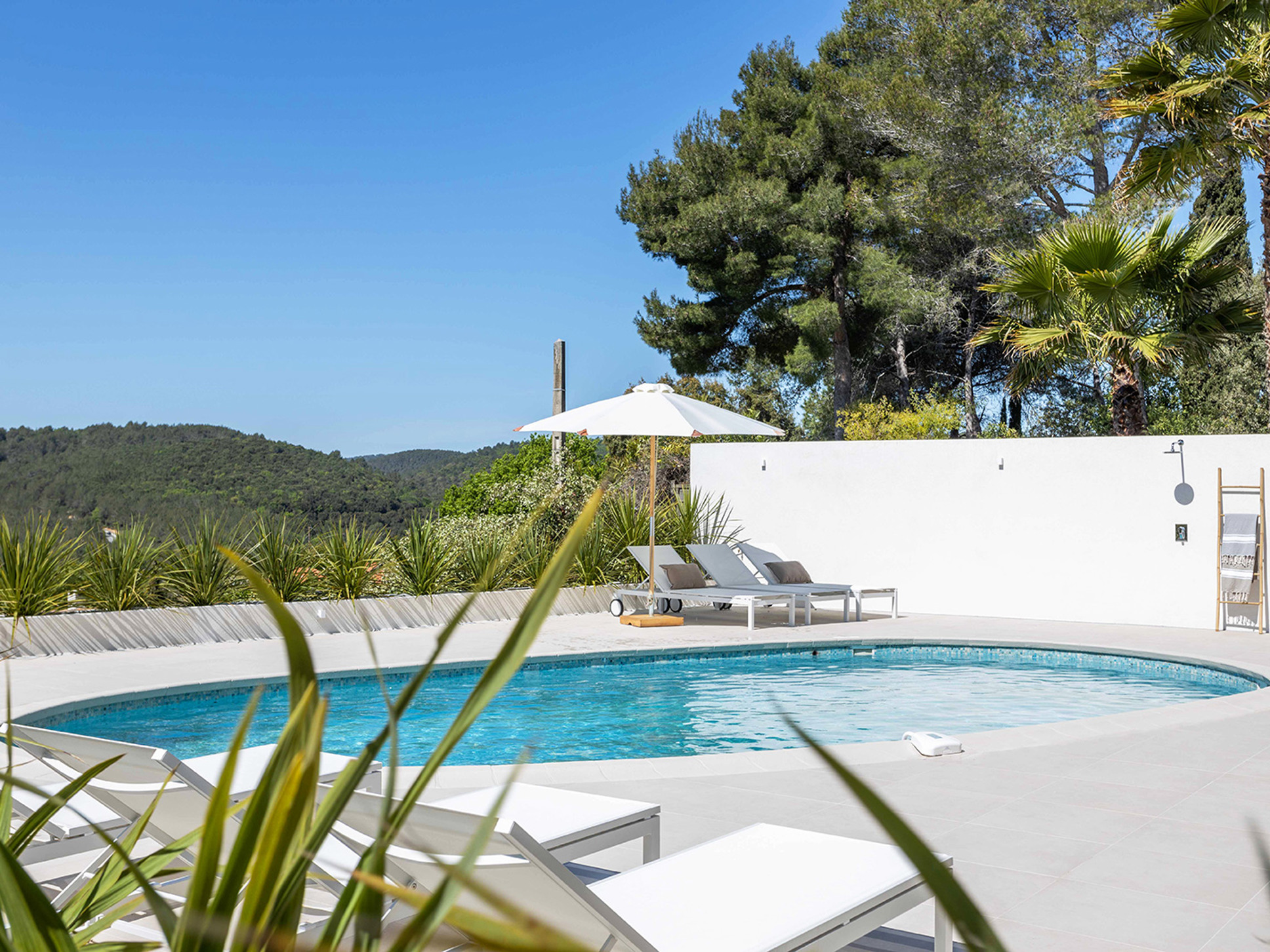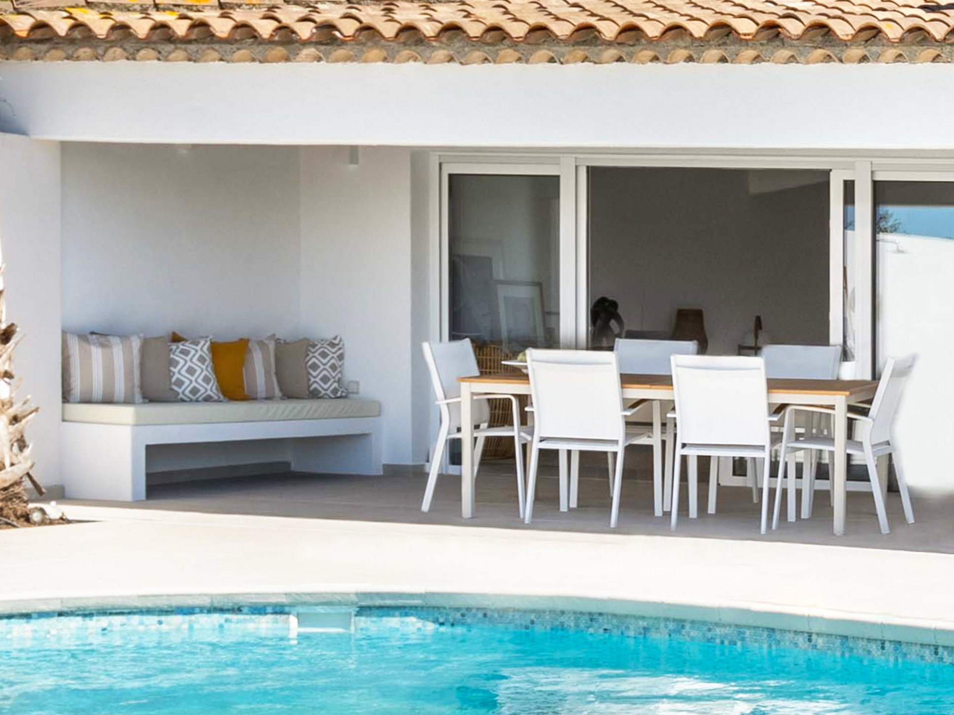 Luxe villa met privé zwembad te Biot, Côte d'Azur. Modern design interieur. Een mooie mix tussen warm Ibiza chic en strak Scandinavisch modern design. 100% airconditioning en supersnel internet. De villa is geschikt voor 8 personen.
