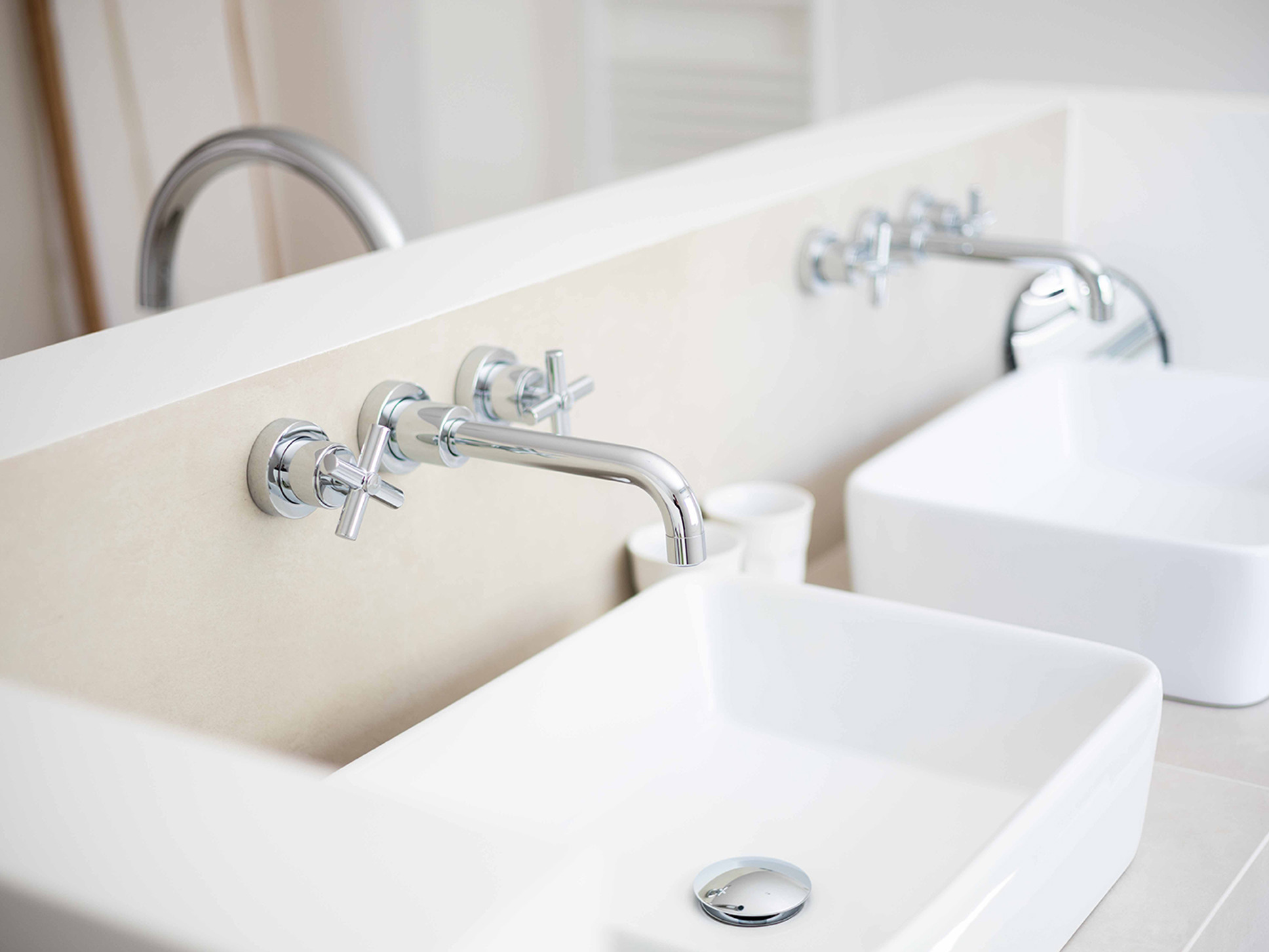 Slaapkamer 4, bevindt zich ook op de eerste verdieping en is ingericht met een tweepersoons boxspring (180x200). De badkamer en-suite is voorzien van een regendouche, design wastafels en een separaat toilet.