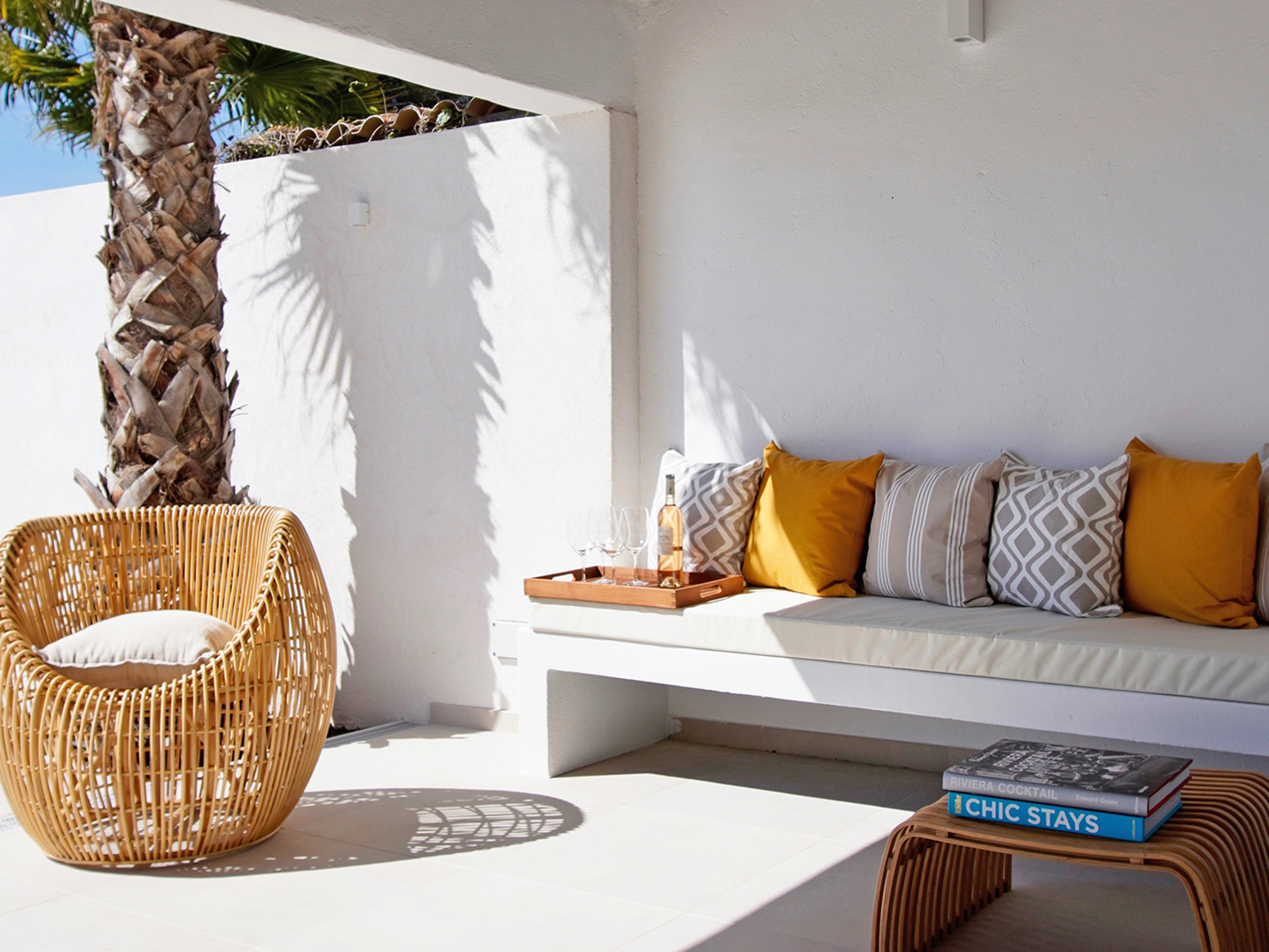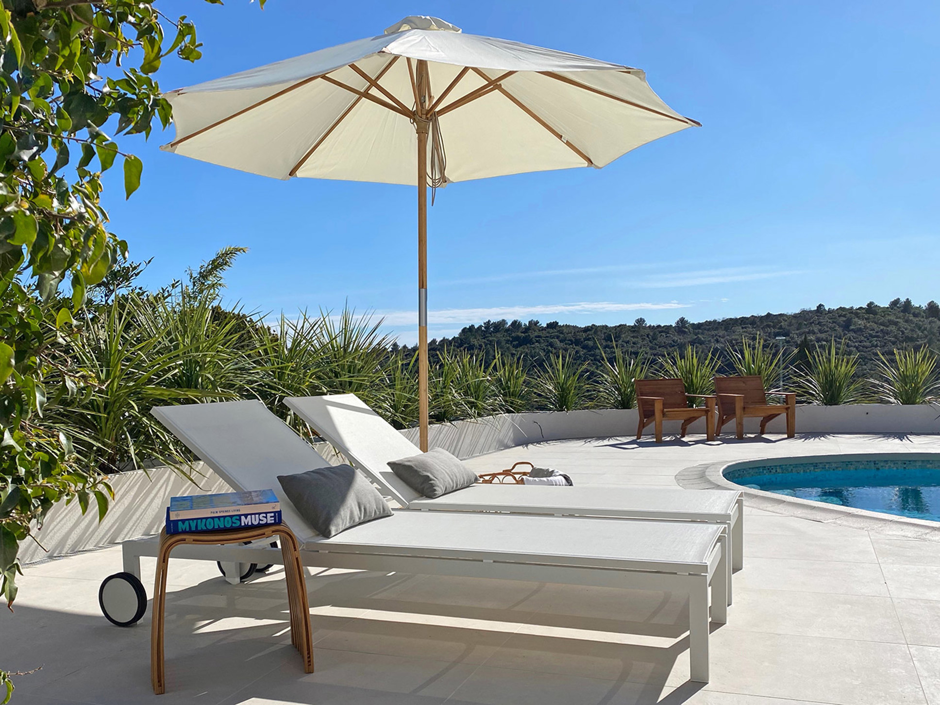 De sfeer op het terras met haar strak witte stuc muren deed ons sterk denken aan de poolside glamour en Cap du Eden Roc foto's van de Amerikaanse fotograaf Slim Aarons. Strakke witte muren, mooie sunloungers en een helder licht blauw zwembad. Dit alles in in perfecte staat van onderhoud.