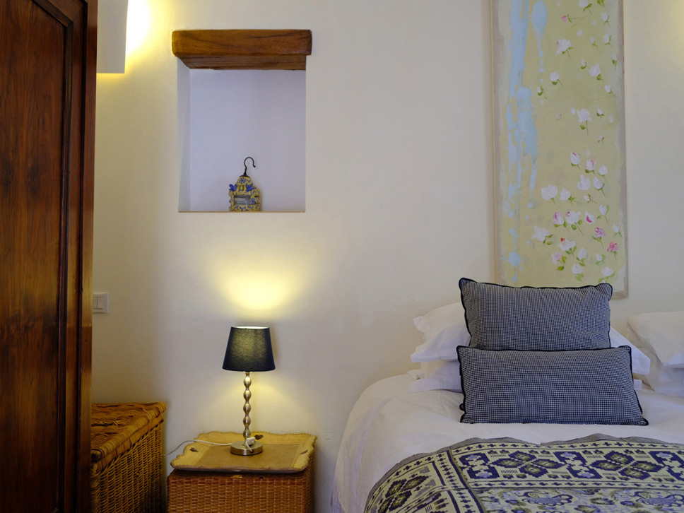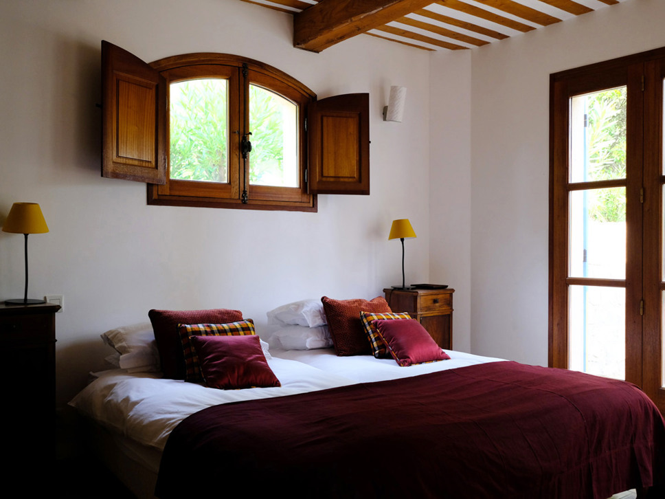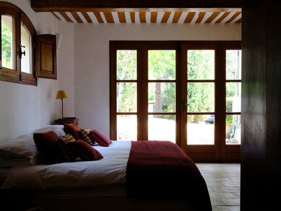 Slaapkamer 1, gelegen in het hoofdhuis, biedt een tweepersoonsbed (180x200) en een en-suite royal badkamer. Openslaande tuindeuren verbinden deze slaapkamer met het terras aan de entreezijde.