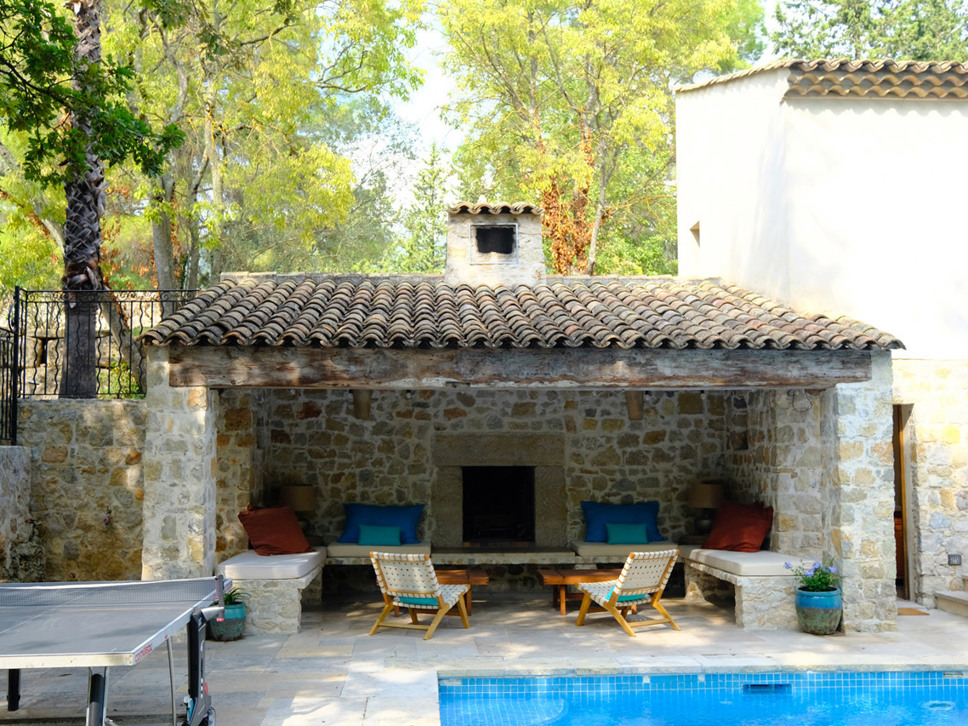 Grenzend aan het poolhouse staat een grote gasbarbecue, handig gesitueerd nabij de tweede keuken van de villa, zodat binnen- en buitenleven naadloos in elkaar overgaan. Zo kunt u met gemak heerlijke maaltijden bereiden en samen dineren aan het zwembad, terwijl u uitkijkt over de tuin.