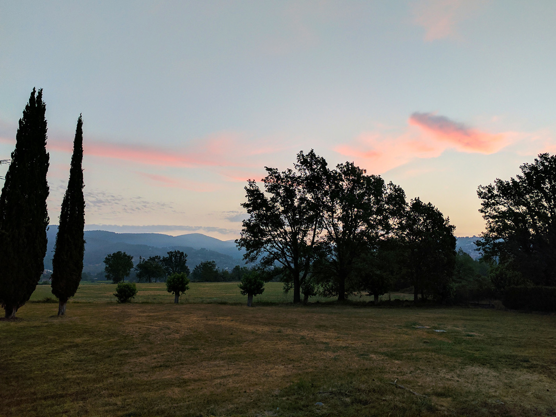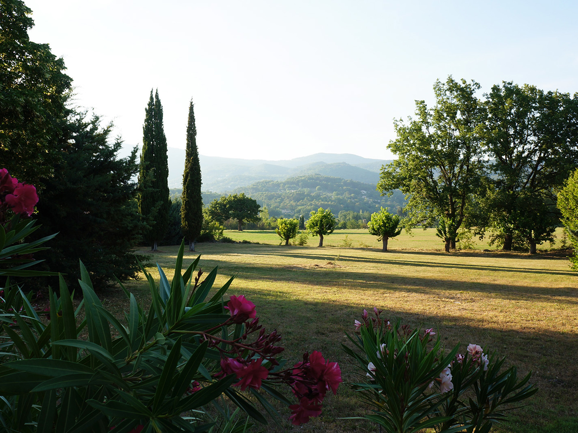Aan de andere zijde van de villa ligt de zeer ruime vlakke tuin met fraai zicht op het heuveldorp Fayence.
