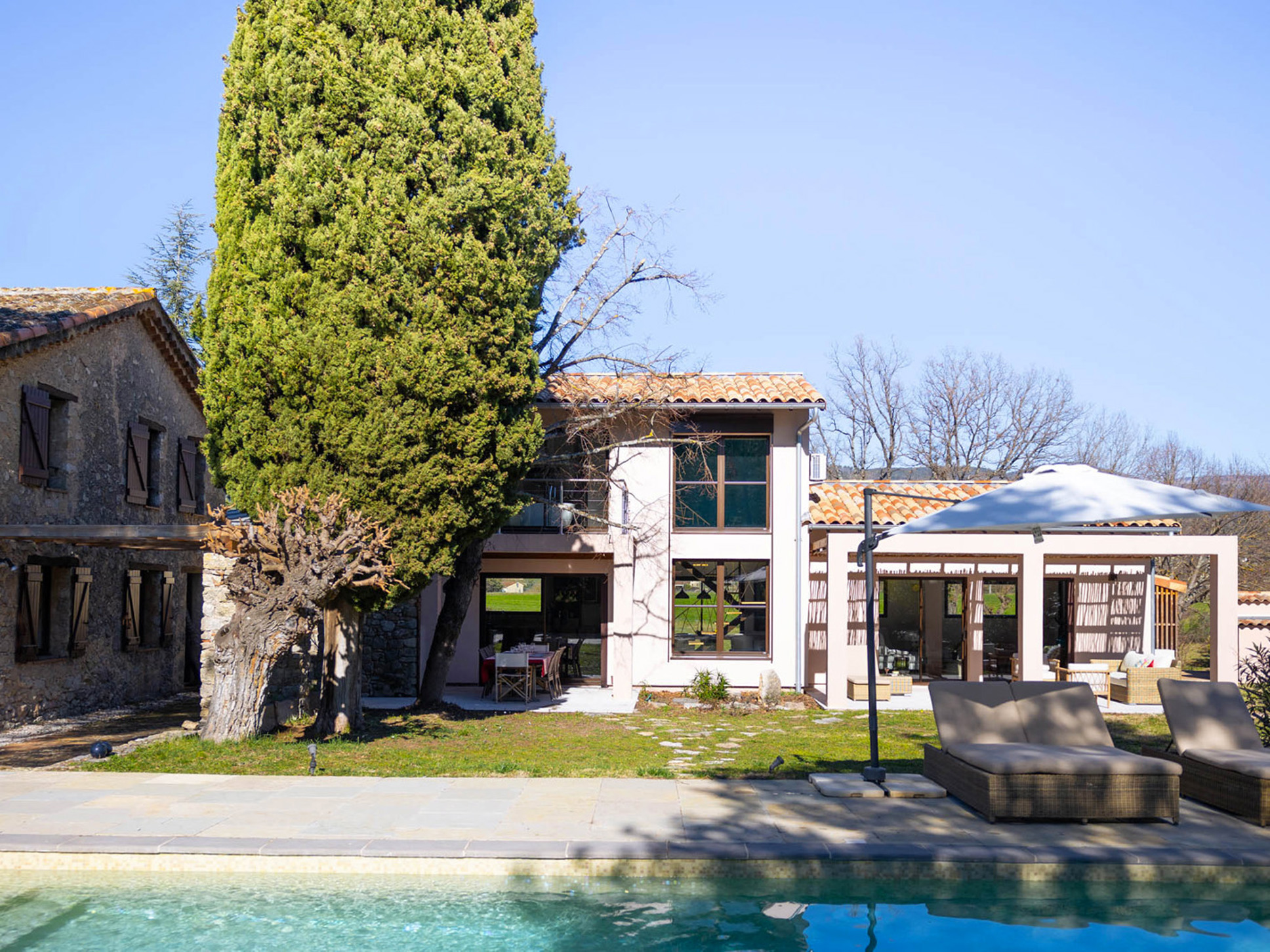 Deze prachtig gerenoveerde Provençaalse villa combineert het beste van twee werelden: een traditioneel karaktervol gedeelte én een moderne, luxe aanbouw.
