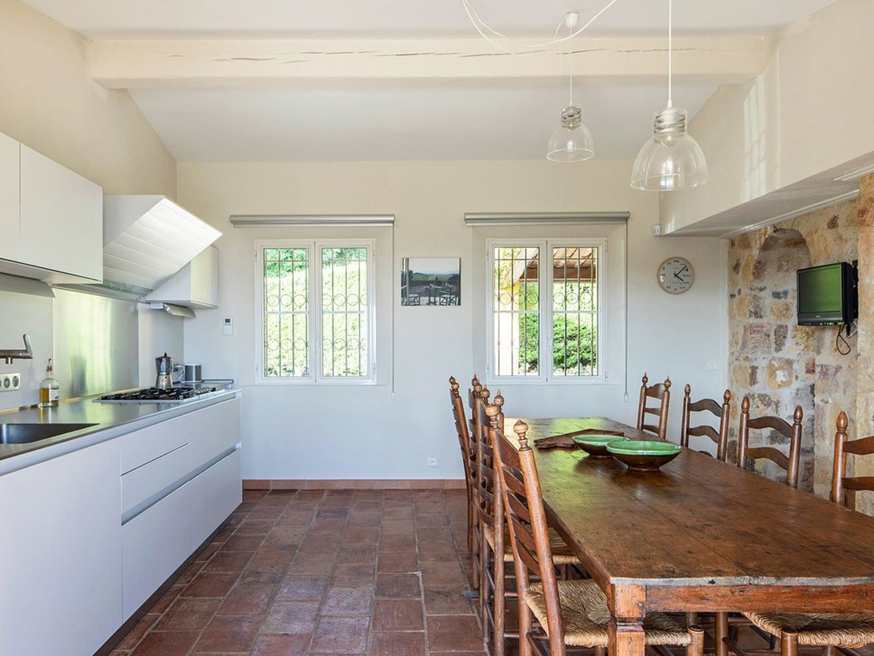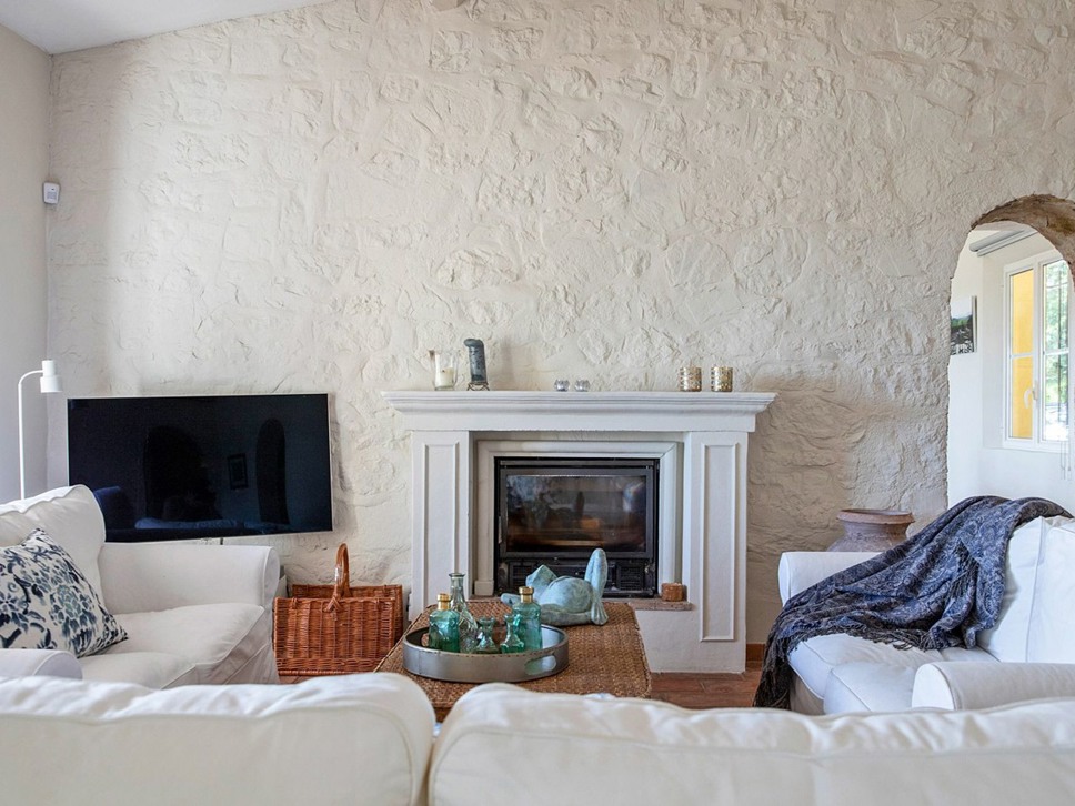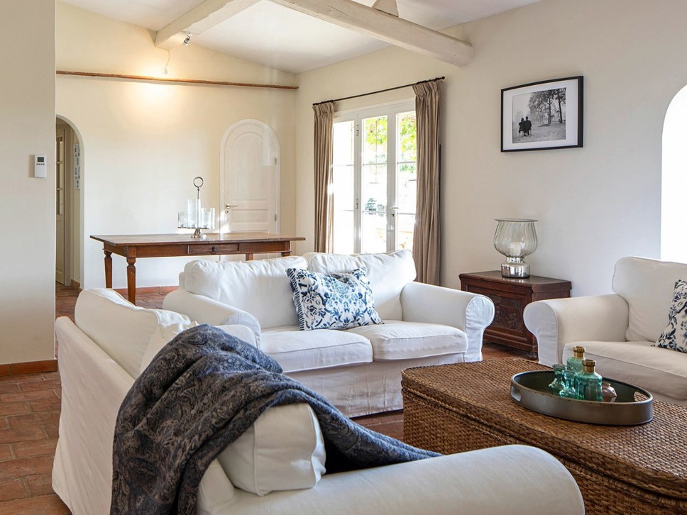 De basis van deze villa is een honderden jaren oude woning welke geheel is verbouwd en uitgebouwd tot een sfeervolle villa. De living is fraai ingericht met comfortabele zitmeubelen welke rond de open haard staan opgesteld. De houten balken geven het geheel een Provençaalse uitstraling. Vanuit de living bieden openslaande deuren toegang tot het deels overdekte terras. Satelliet TV is aanwezig.