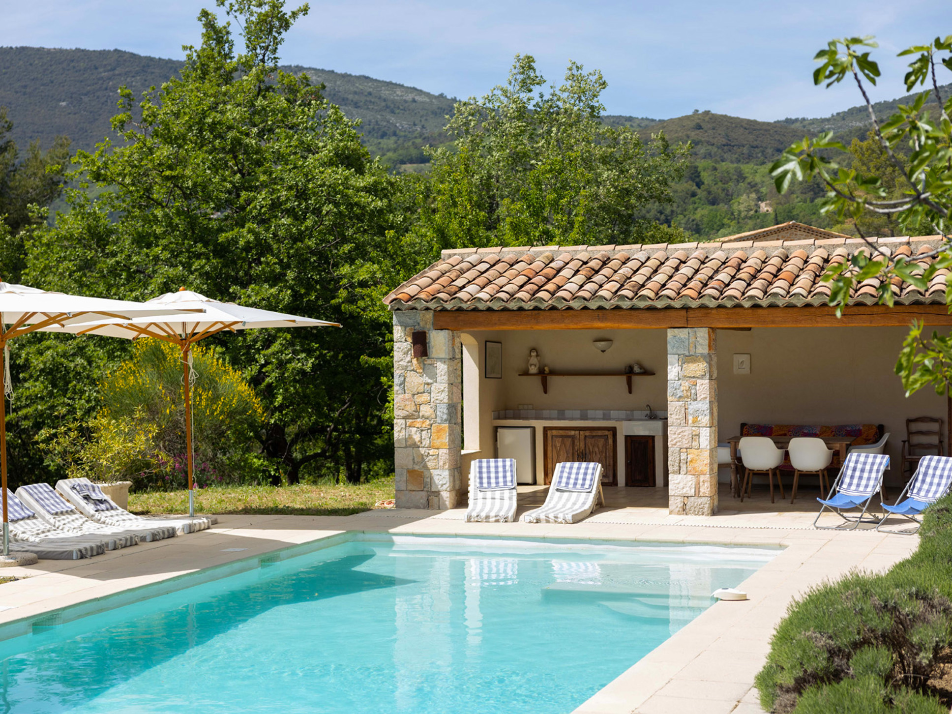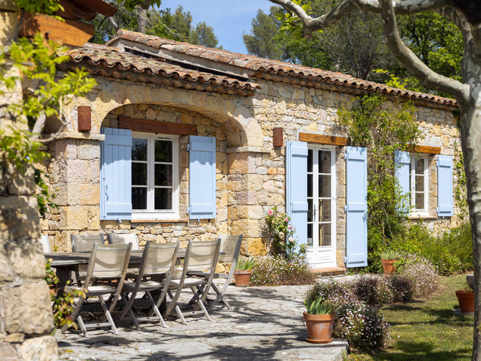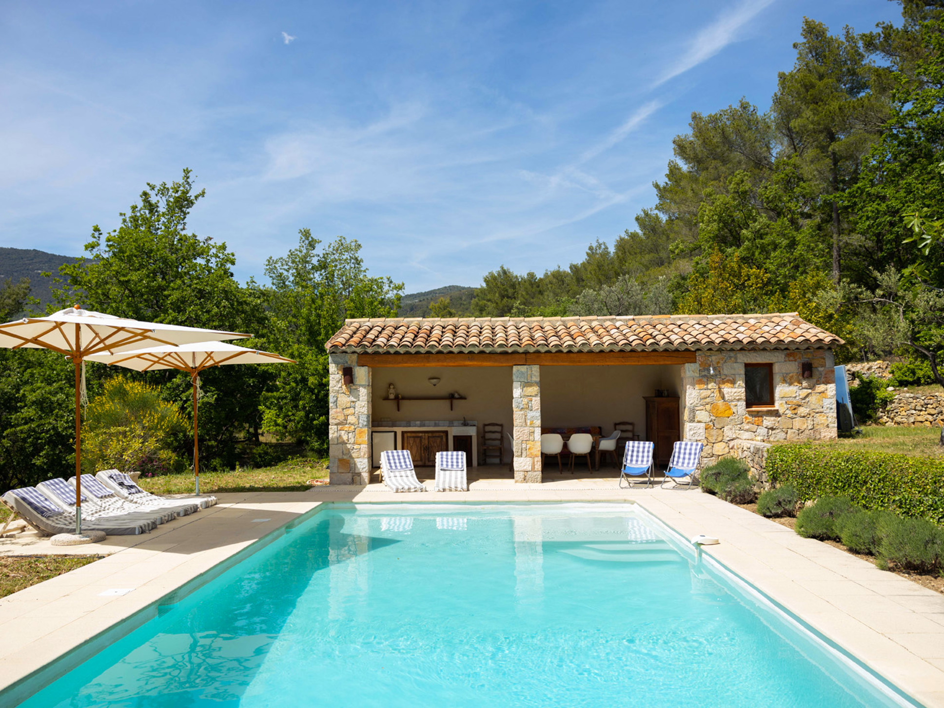 Sfeervol vakantiehuis met privé zwembad te Fayence, Provence. Ook met gastenverblijf en een fraai poolhouse. De tuin is royaal en meet 10.000 m2. Vrij uniek is dat alle vertrekken zich bevinden op de begane grond. Geschikt voor 6-8 personen.