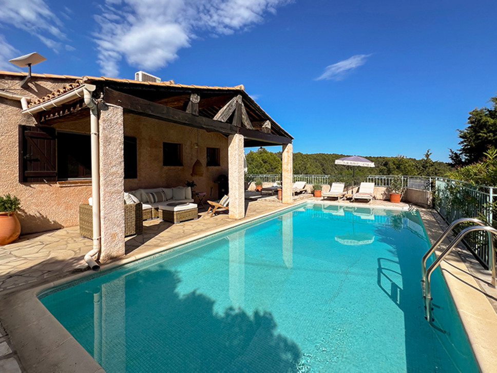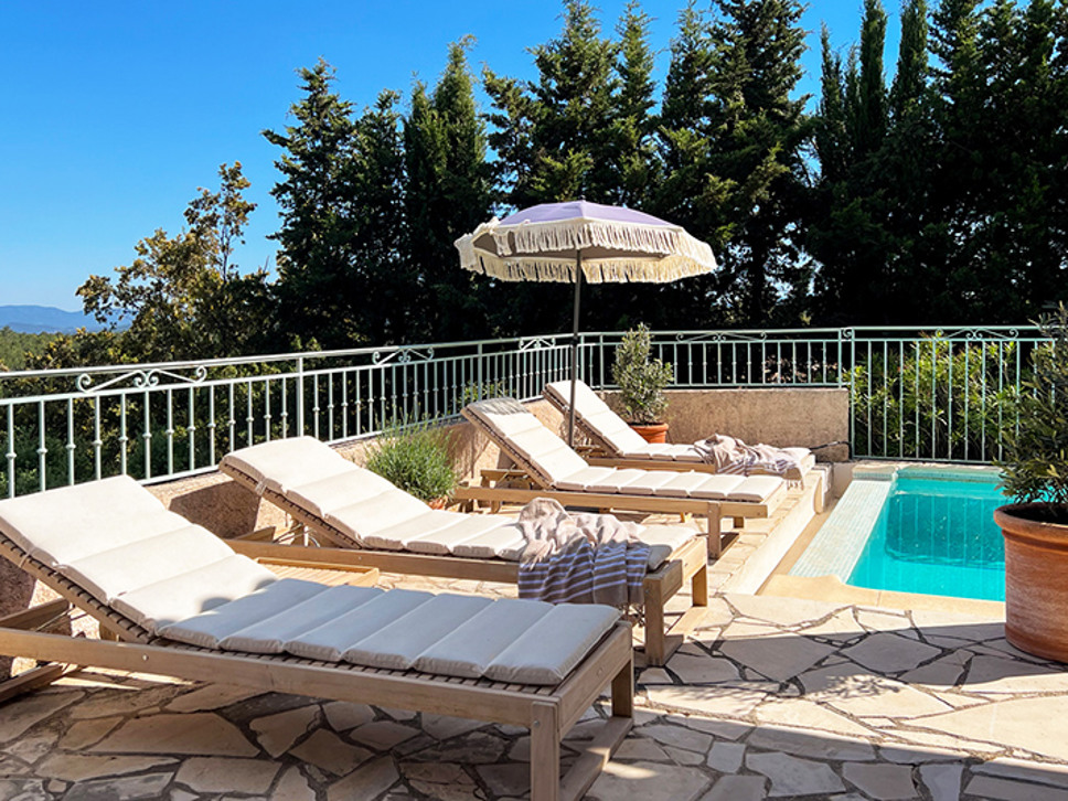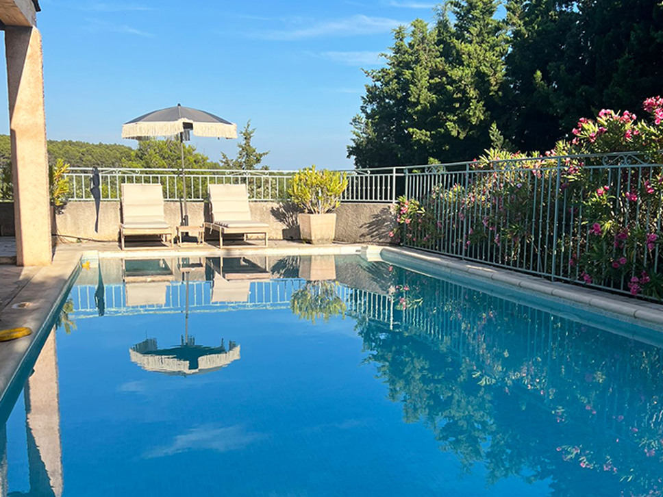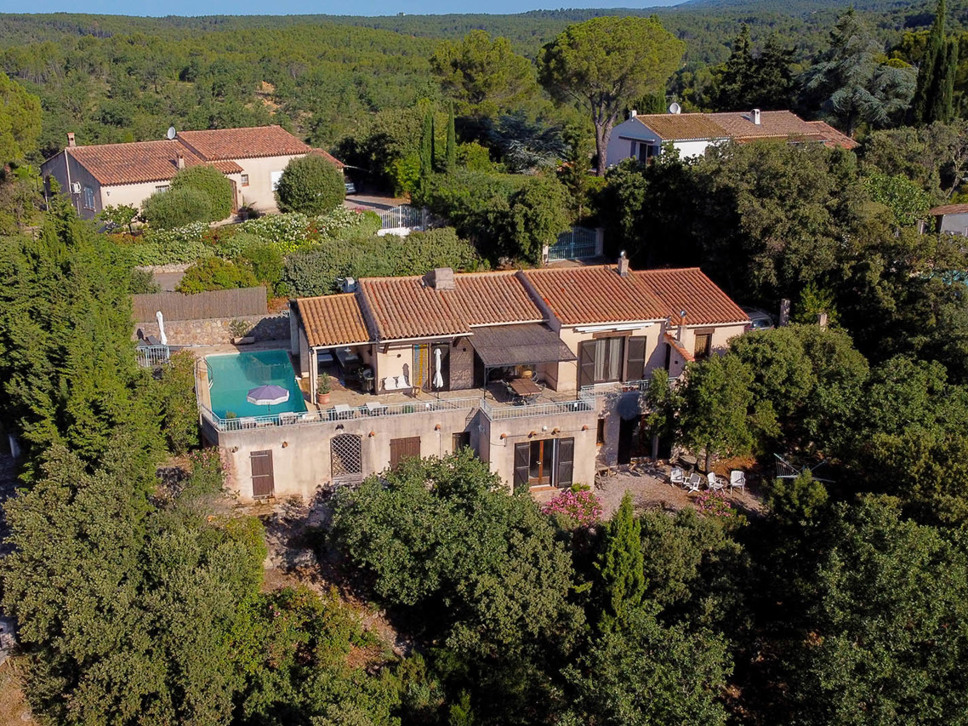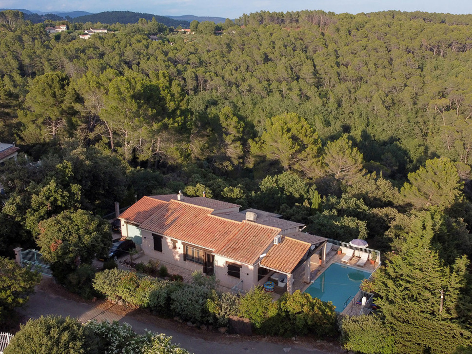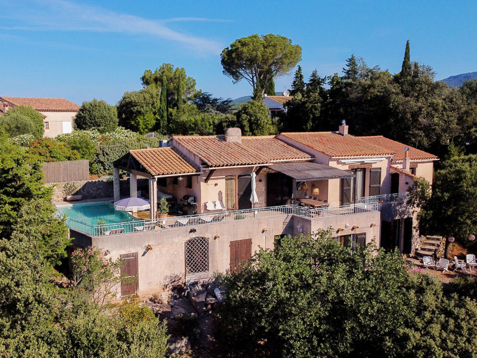 Vrijstaand Provençaalse vakantiehuis te Flayosc, Provence. Fantastisch uitzicht, goede privacy en rust. Met privézwembad en airconditioning in de slaapkamers. Geschikt voor 6 personen.