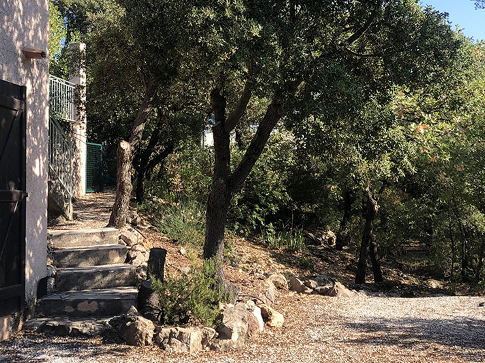 De woning ligt in een groene en bosrijke omgeving. De oriëntatie is op het zuiden waardoor u optimaal kunt genieten van de zon. Wilt u even uit de zon dan biedt het overdekte terras voldoende schaduw. Het terras beschikt over een grote eettafel en onder de veranda staat een loungeset waar u de hele dag heerlijk kunt vertoeven. Hier staat ook de bbq in de schaduw. Beneden bij de slaapkamer en de study zijn ook mogelijkheden om buiten te zitten. De tuin van de villa is onlangs gerenoveerd tot een leuke ruige bostuin met vlakke terrassen.