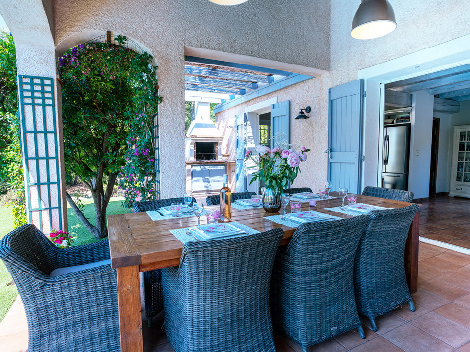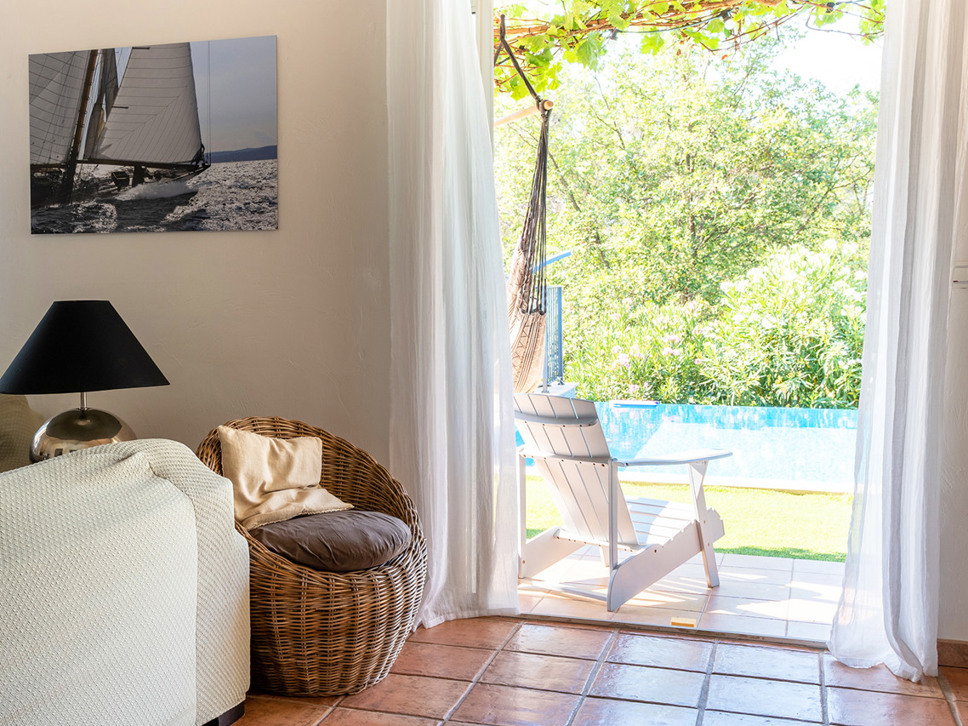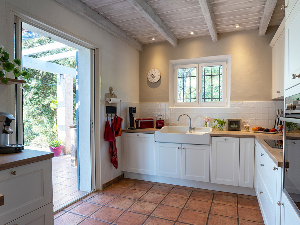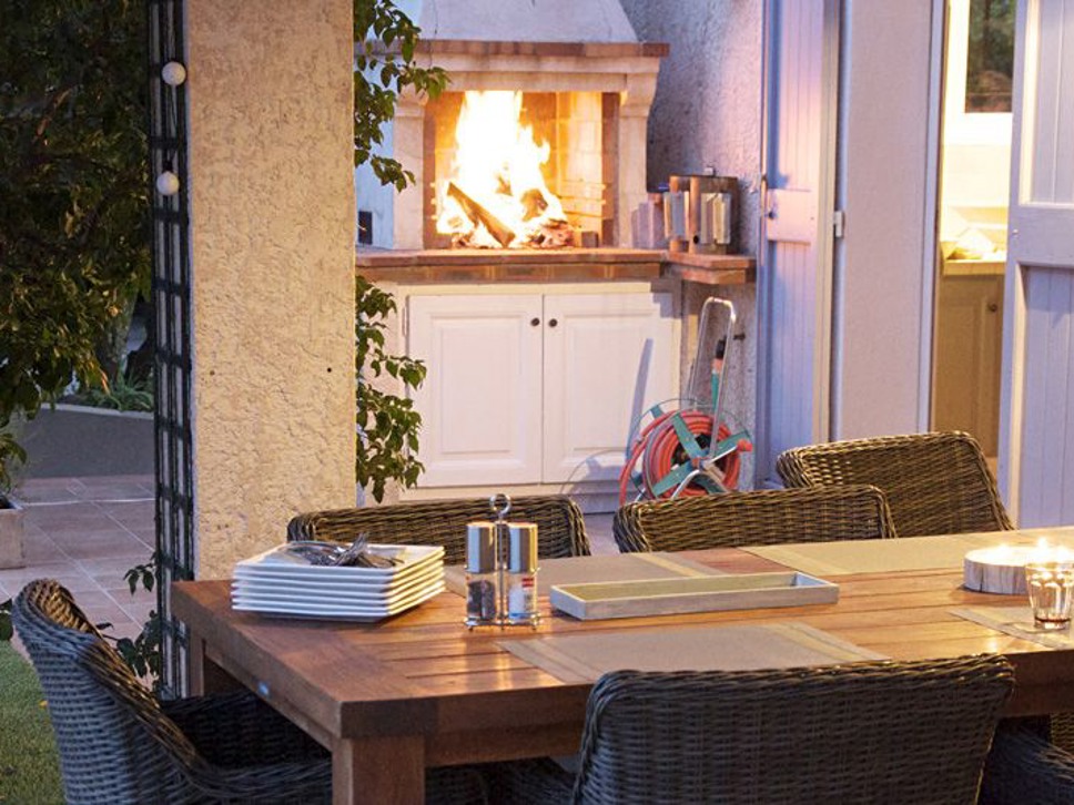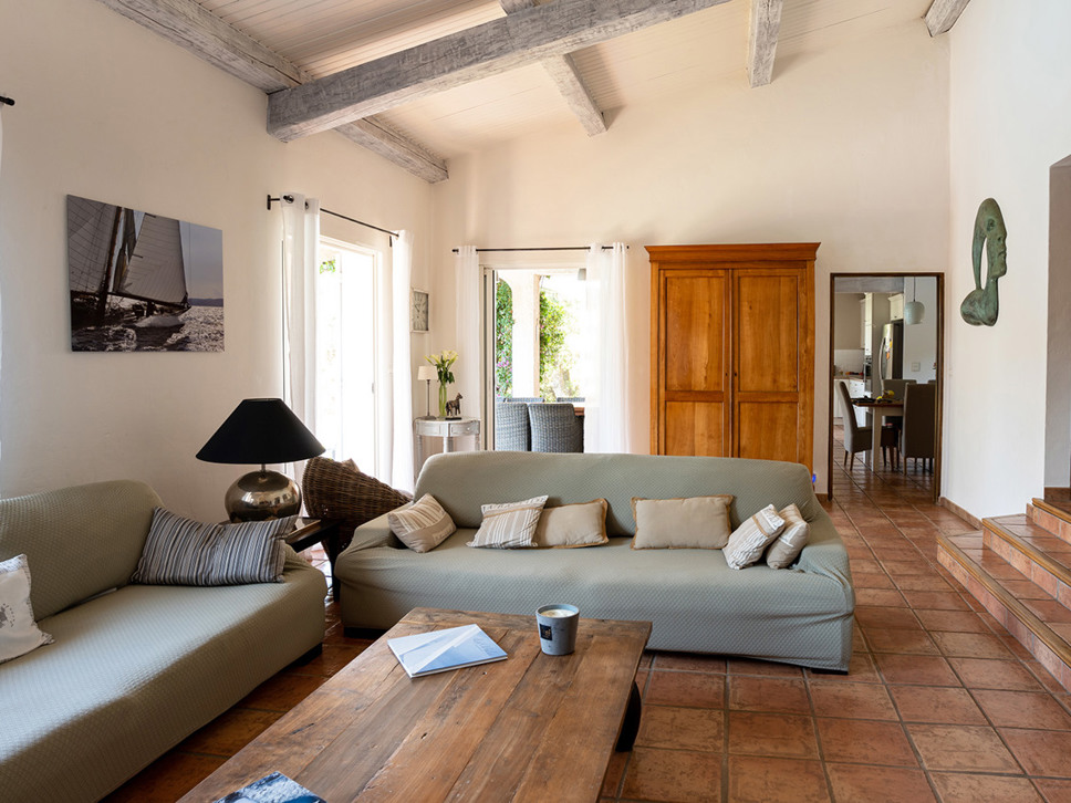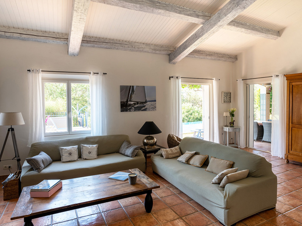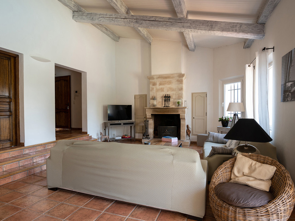 Tussen de wijnvelden door komt u via de toegangsweg uit bij deze Provençaalse villa. De living is sfeervol en gezellig ingericht. De banken zijn rondom de open haard opgesteld, erg leuk om hier tijdens het voor- en naseizoen gebruik van te maken. Er is een TV (geen satelliet), WIFI, een DVD-speler en een Bluetooth speaker aanwezig. De living biedt via schuifdeuren direct toegang tot het terras.