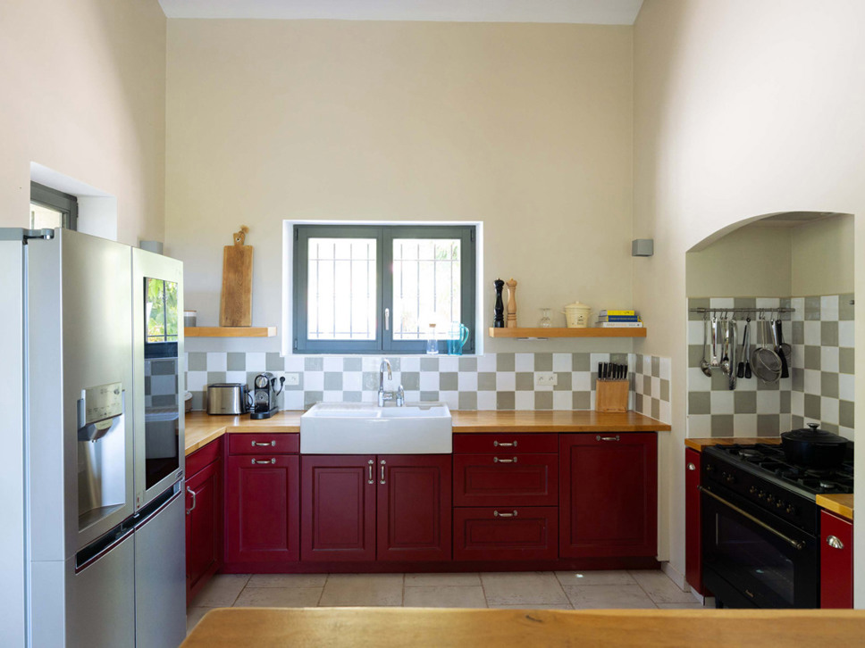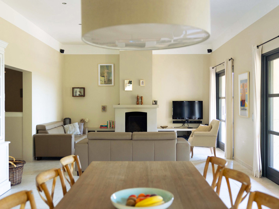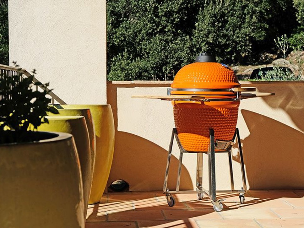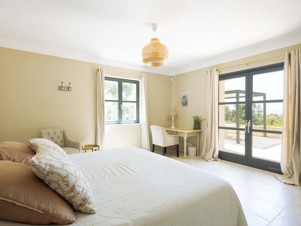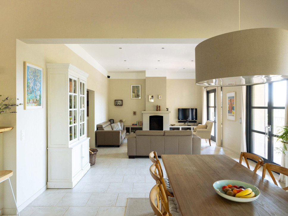 Zowel vanuit de living als vanuit de keuken heeft u direct toegang tot het L-vormige overdekte terras. Het terras heeft verschillende zitjes, van hieruit heeft u een prachtig uitzicht over Lorgues en de omgeving. Op dit terras staat ook een grote eettafel met stoelen en een buitenkeuken, voorzien van een plancha en een kolen BBQ / open haard. Heerlijk tafelen met uitzicht!