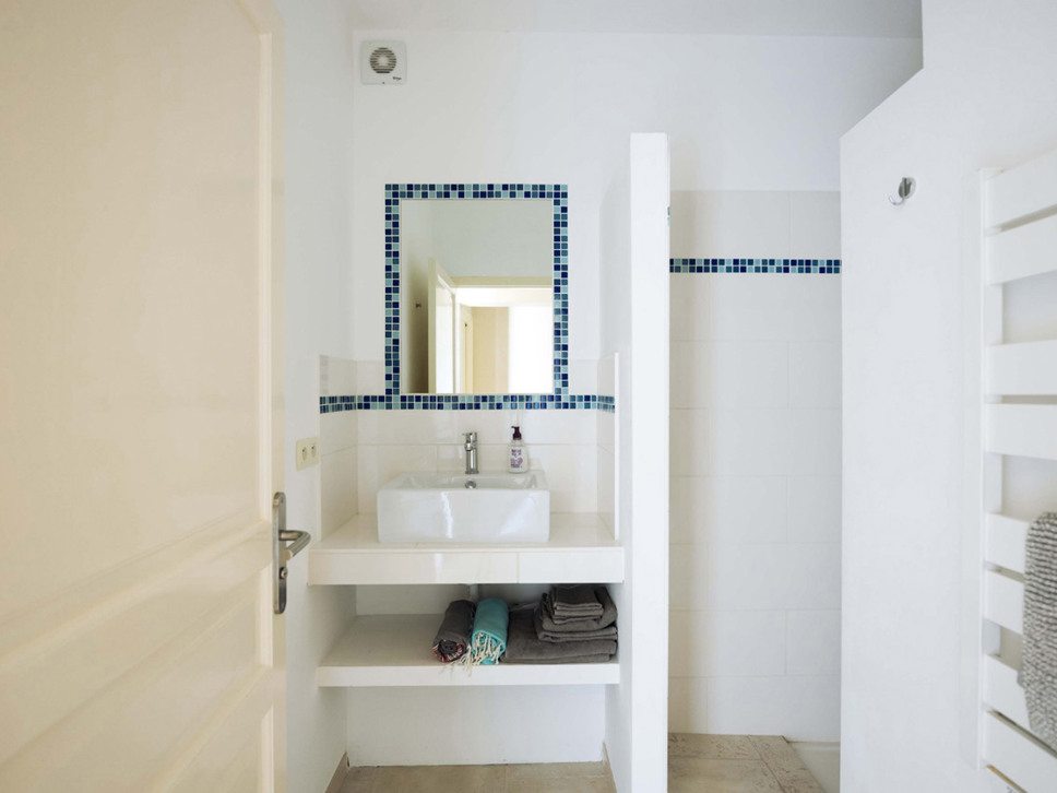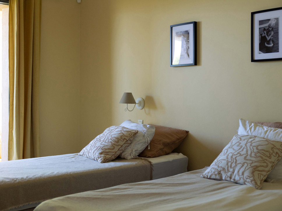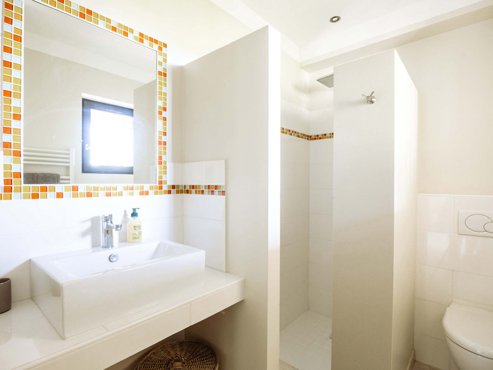 De villa beschikt over 3 ruime slaapkamers en 3 badkamers. Zowel de slaapkamers als de badkamers bevinden zich op het niveau van het zwembad, de etage onder de living.
