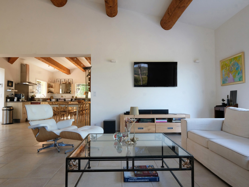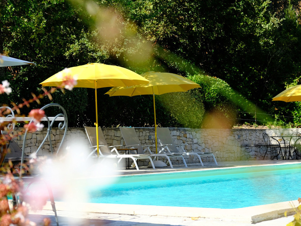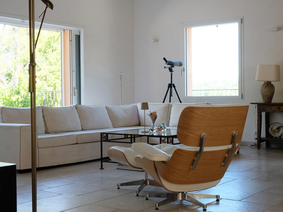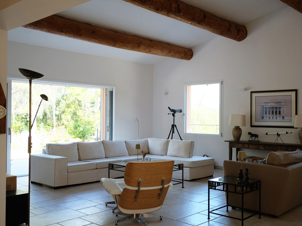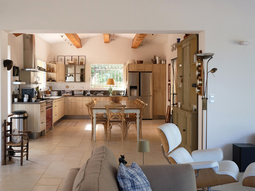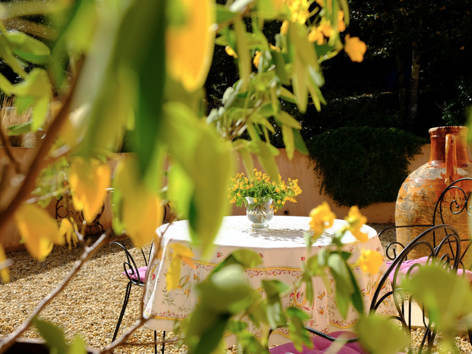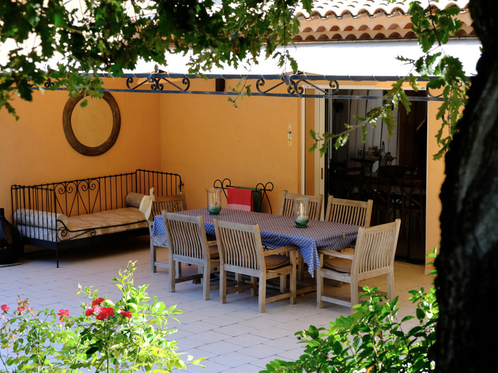 Vanuit de living stapt u direct het terras op voor tuin en het zwembad. Erg leuk zijn de diverse comfortabele zitjes rondom de villa. Ligbedden, een eettafel of een typisch Frans bistro-setje, zo kan iedereen een eigen plekje zoeken in zon of schaduw.