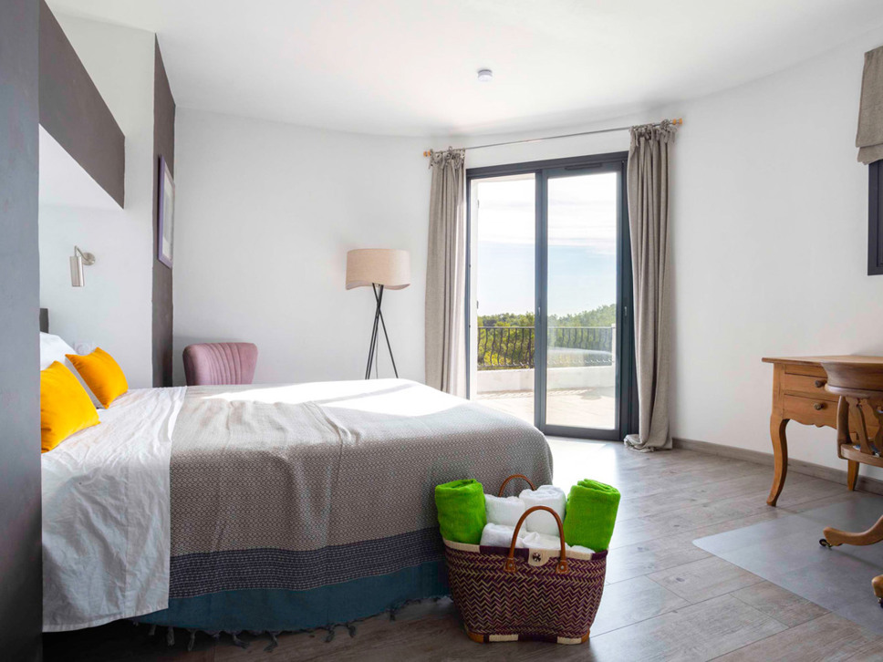 De villa beschikt in totaal over 5 slaapkamers en 4 badkamers; 2 slaapkamers in de villa op de boven verdieping, 1 slaapkamer in het torentje en 2 slaapkamers (het appartement) op de benedenverdieping. Van de 5 slaapkamers zijn er 3 slaapkamers voorzien van airconditioning.