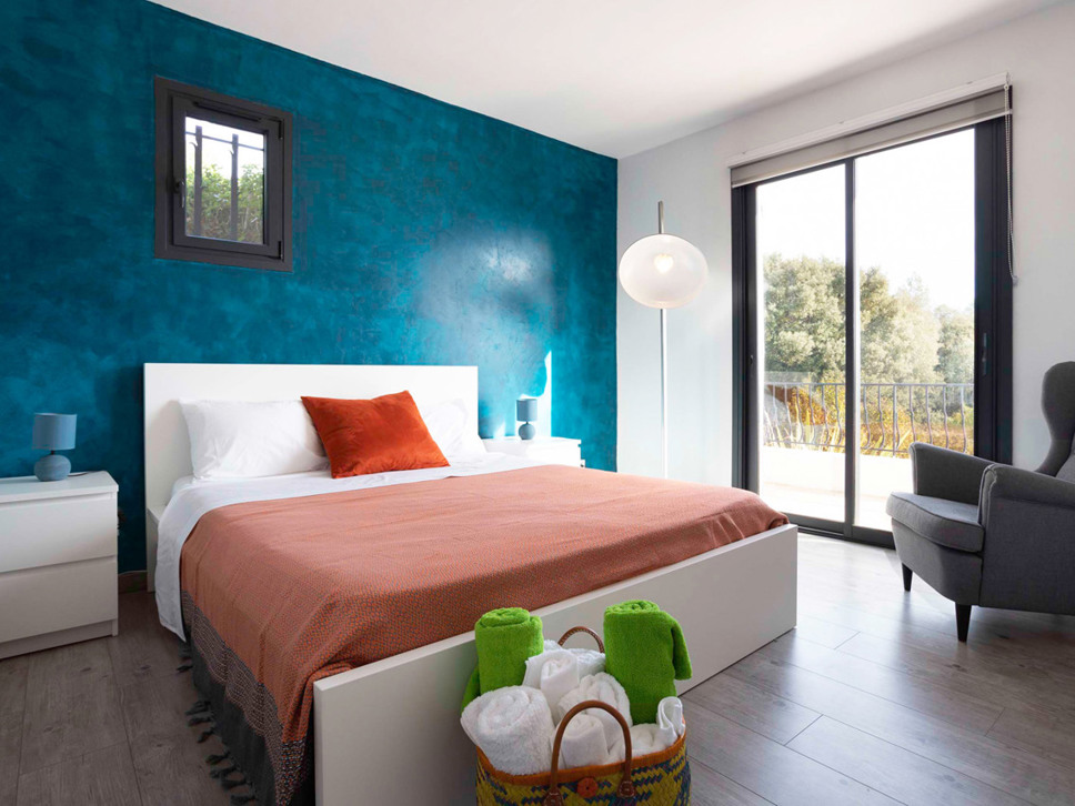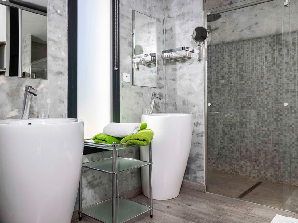 Slaapkamers 4 en 5 bevinden zich op de benedenverdieping (het separate appartement). Erg handig voor bijvoorbeeld grootouders of gasten. Separaat betekent een eigen entree, maar ook deel uitmakend en te bereiken van binnenuit de villa. De bedden meten 140x195. De badkamers zijn en-suite (douche en wastafel). De kamers in het appartement hebben geen airco.