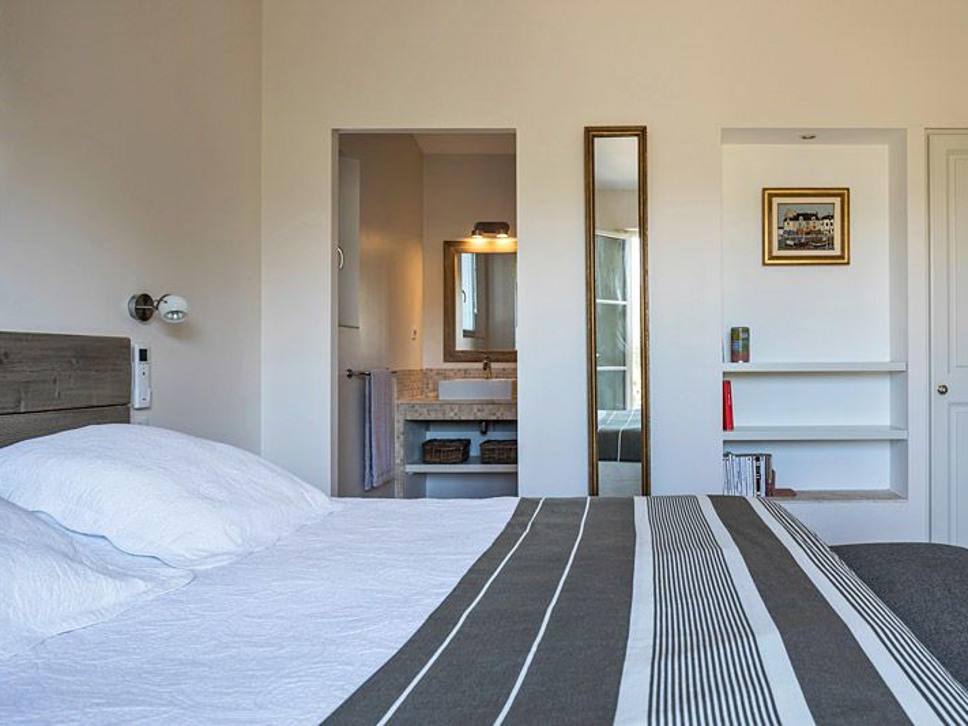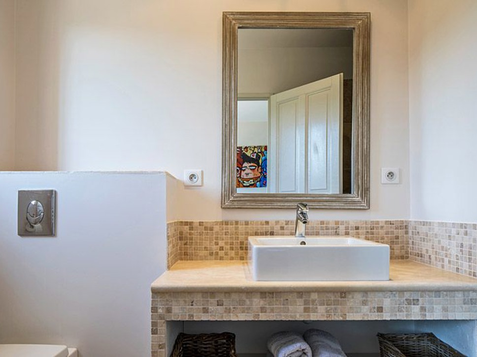 Er zijn 4 slaapkamers in de villa, allemaal met een eigen badkamer. Er zijn twee slaapkamers op de begane grond en twee op de eerste verdieping. Slaapkamer 1 bevindt zich op niveau living en heeft een en-suite badkamer (douche en wastafel en separate W.C.). Het bed is type boxspring (160x200). Slaapkamer 2 bevindt zich aan de andere zijde van de villa op niveau living. Er staat een tweepersoonsbed (160x200), ook met en-suite badkamer (douche en wastafel en separaat toilet).
