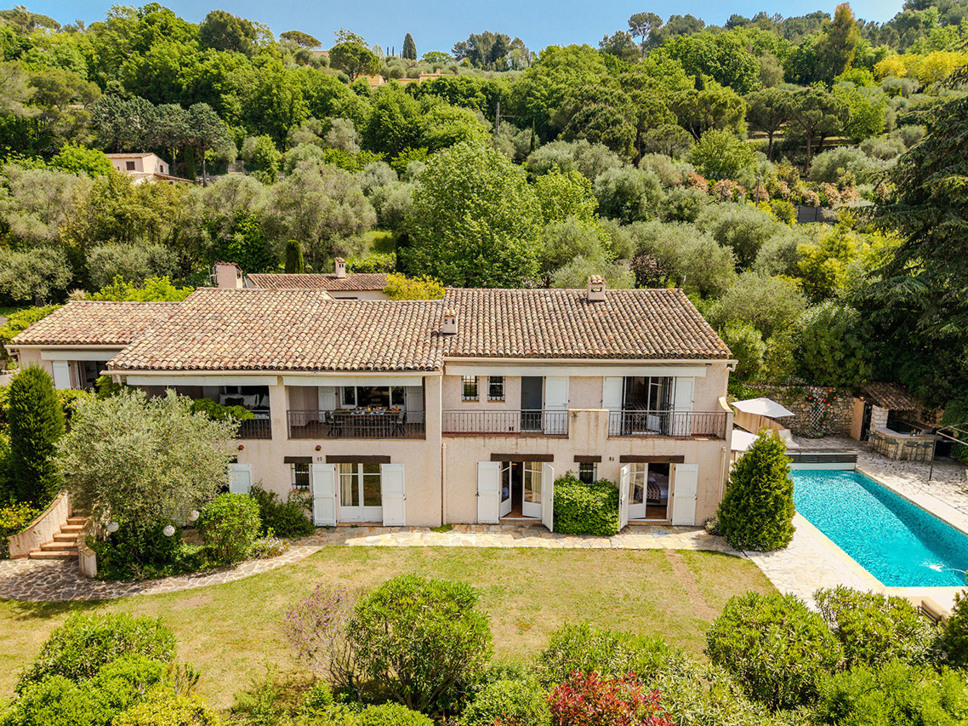 Zeer royale familievilla met privé zwembad te Mouans-Sartoux. Op korte afstand van de geliefde plaatsen Valbonne en Mougins. Separaat gastenverblijf. De villa is geschikt voor 12.