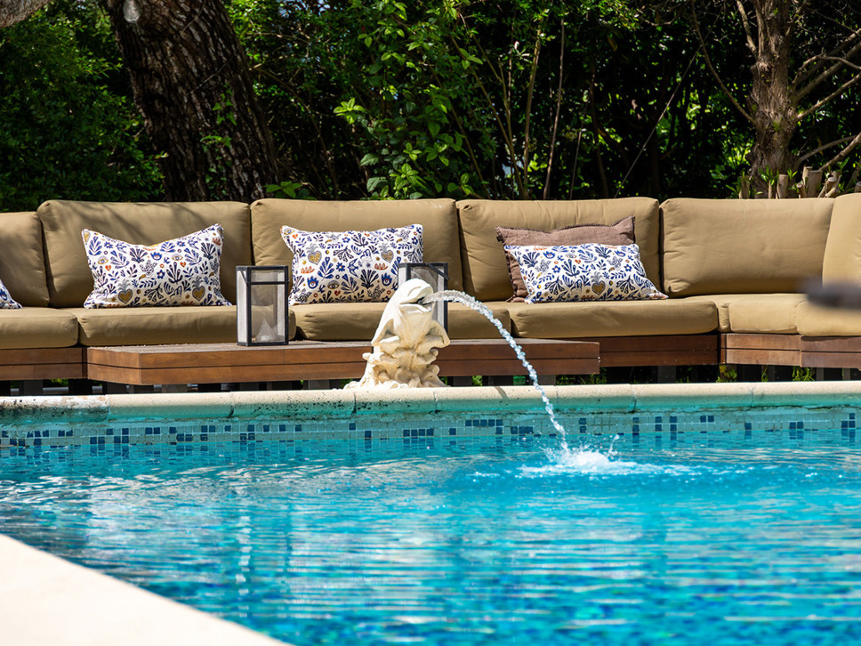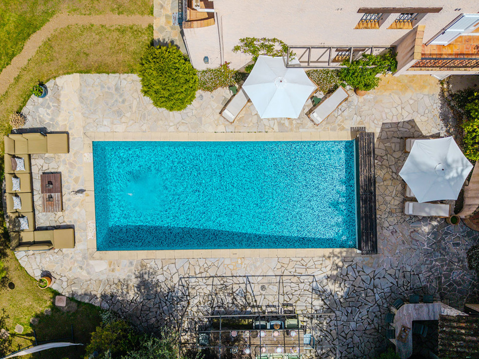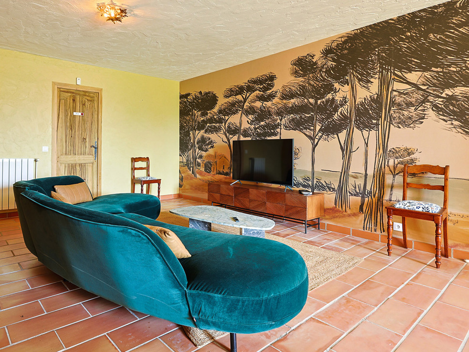 Voor ontspanning en vermaak is er een ruime TV kamer / gameroom. Vanuit diverse vertrekken heeft u toegang tot de omliggende terrassen en de tuin – perfect om te ontspannen in de schaduw of te genieten van het buitenleven bij het zwembad.