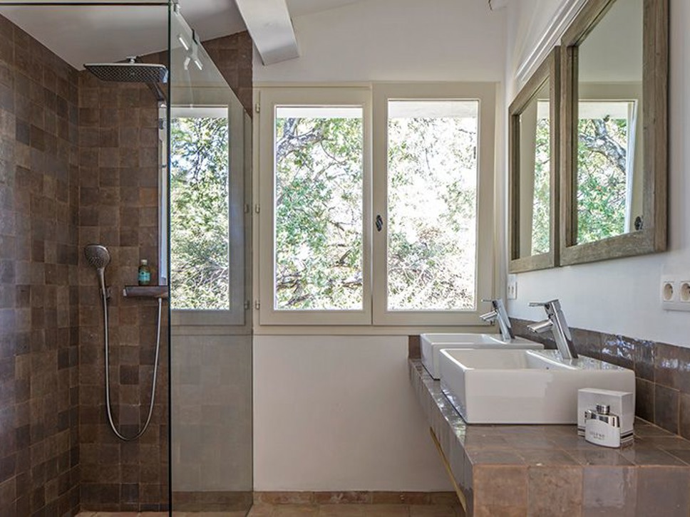 De villa beschikt over 5 slaapkamers. Twee op de begane grond en drie op de eerste verdieping. Alle slaapkamers zijn voorzien van airconditioning. Er zijn 4 badkamers; 3 op de begane grond en 1 badkamer op de eerste verdieping.