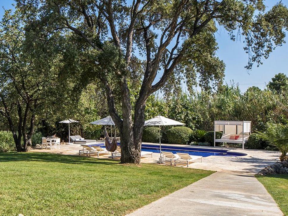 Het zwembad meet 10 x 5 meter en is voorzien van design tuinmeubilair (10 ligbedden). De afstand tussen de villa en het zwembad is 15 meter. De tuin is gedeeltelijk met gras begroeid. Hoge bomen zorgen voor schaduw op een warme zonnige dag. Het gras is licht glooiend maar heerlijk voor kinderen om op te spelen.