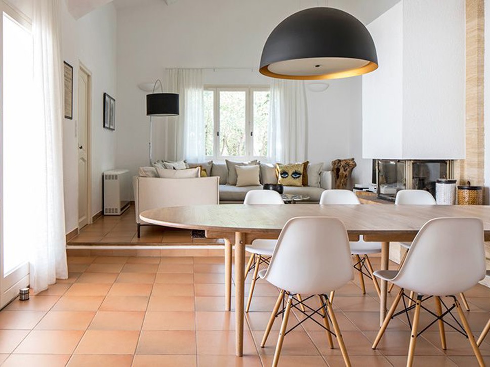 De villa is smaakvol ingericht in een kleurenpallet van wit, beige en grijs. Modern met een traditionele touch. Het interieur is van hoge kwaliteit. Luxe zitmeubelen, comfortabele boxspring bedden en mooie kwaliteit linnen.