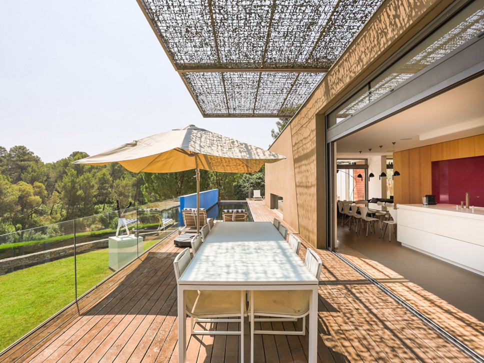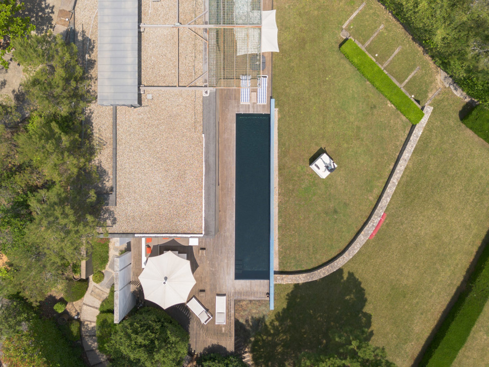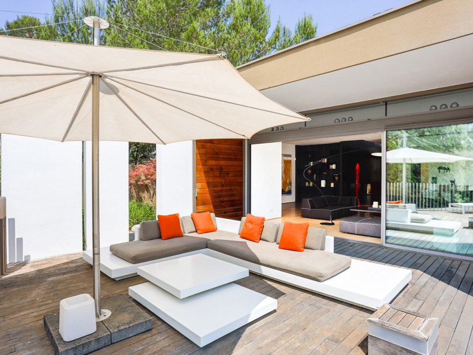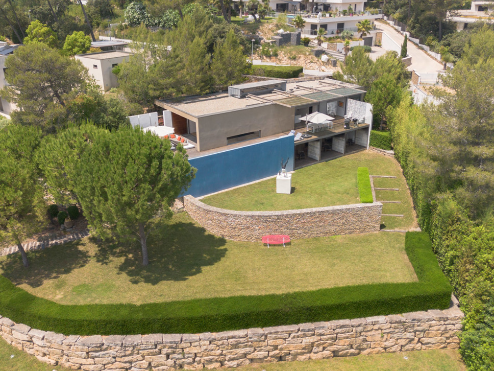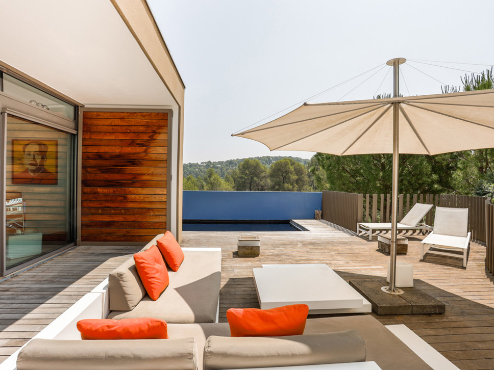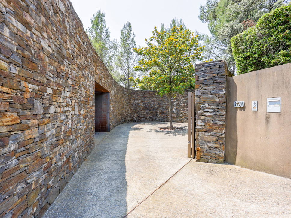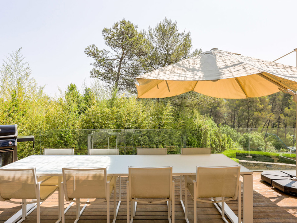 De villa is gelegen in een chique residentiële woonwijk net buiten Montpellier. De villa kijkt uit over weelderig bos gebied en heeft absolute rust en stilte omheen. De villa ligt in een mooie tuin en beschikt over drie zeer grote terrassen zodat er zon te vangen is op elk moment van de dag. De gehele villa straalt een sfeer van ongedwongen luxe en stijlvolle architectuur uit. Qua comfort en luxe doet het buitengebeuren niet onder voor het interieur. Door grote schuifdeuren loopt u zowel van uit de keuken als vanuit de living direct het grote terras op.