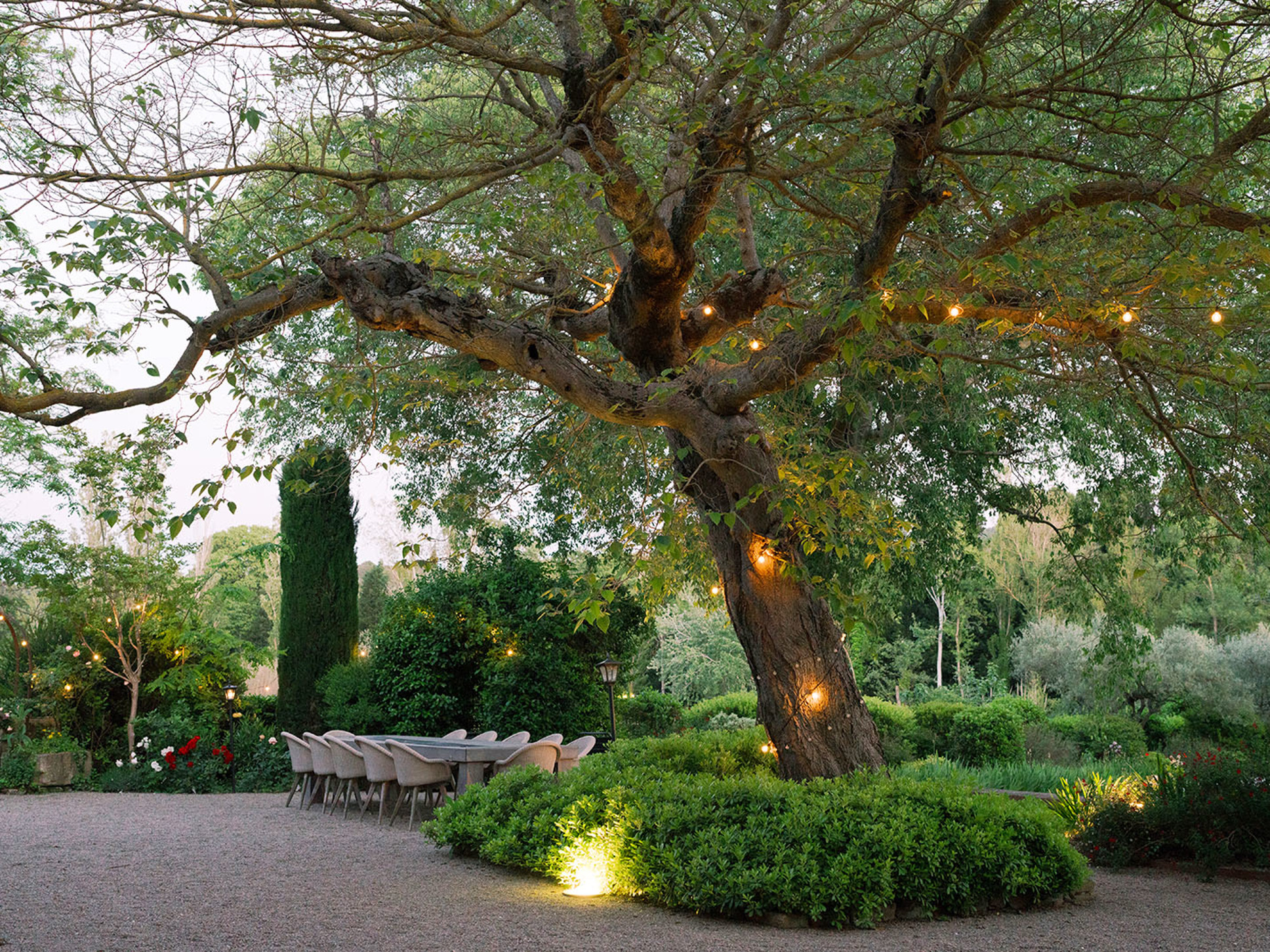 Het landgoed, met zijn 10 hectare en een eigen meer, kan alleen maar worden omschreven als indrukwekkend. Vanaf het moment dat u het terrein betreedt ervaart u een gevoel van rust en ultieme ontspanning. Er is een privé meer met rondom de oude grote bomen, de goed verzorgde tuin, het grasveld en de eerste glimp van de oude Mas.