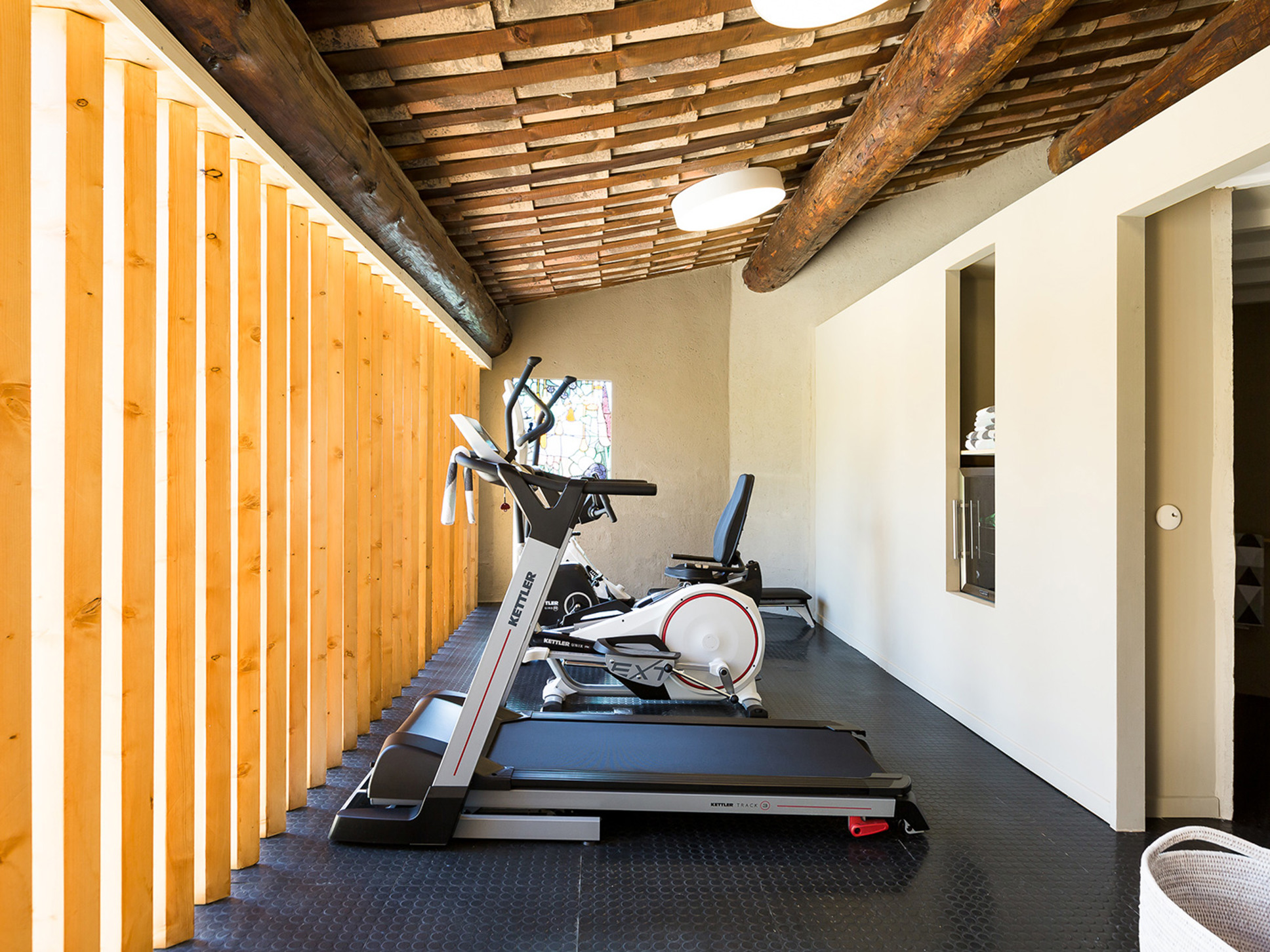 Er is een groot privé zwembad dat bijna verscholen ligt in een weelderige groene omgeving. Naast het zwembad staat het poolhouse waarin zich een eigen fitnessruimte bevindt.