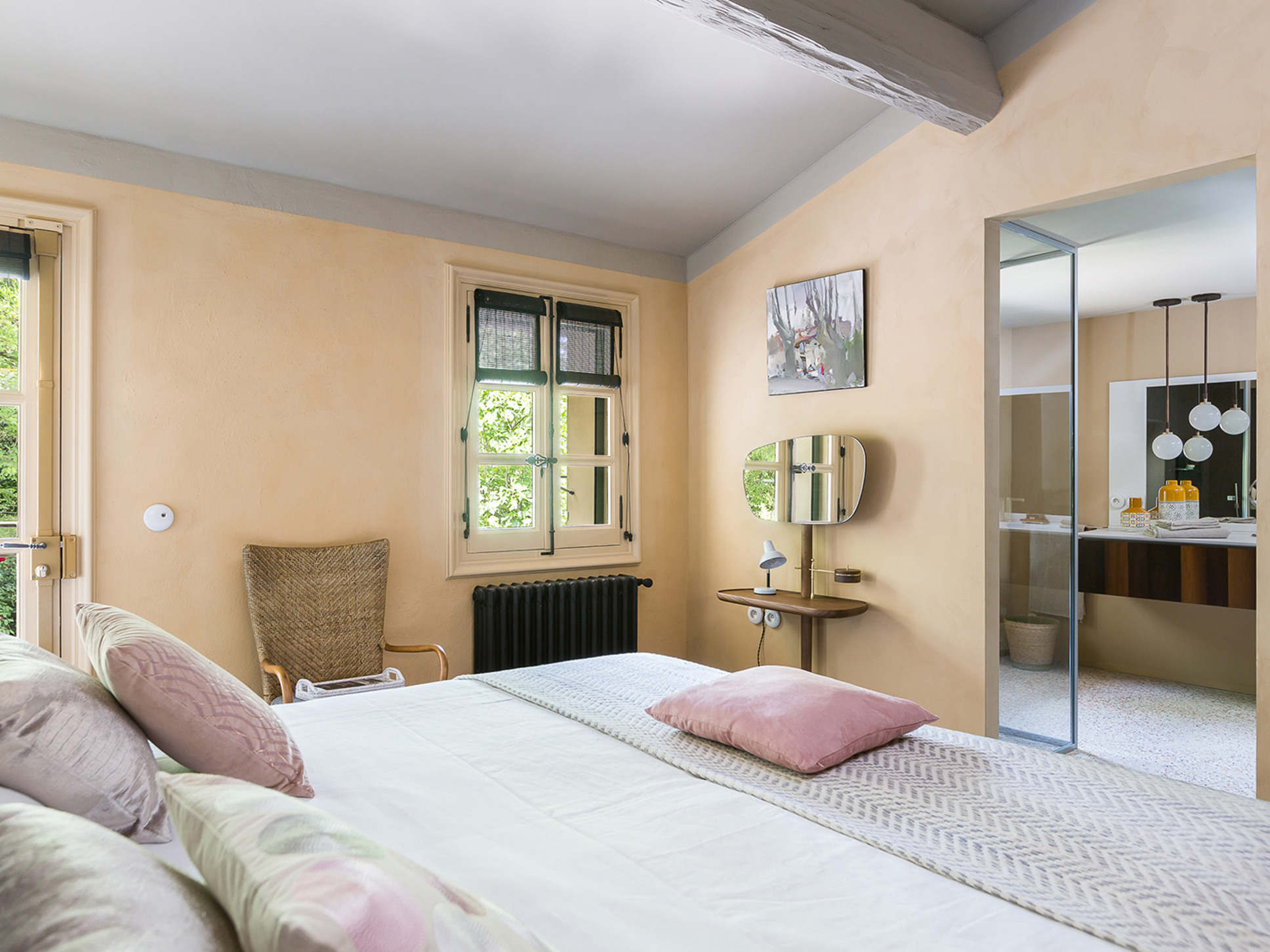 Tevens is er dichtbij naast het hoofdhuis een maison des amis. Een separate studio met een tweepersoons slaapkamer (8), badkamer en een kleine living.