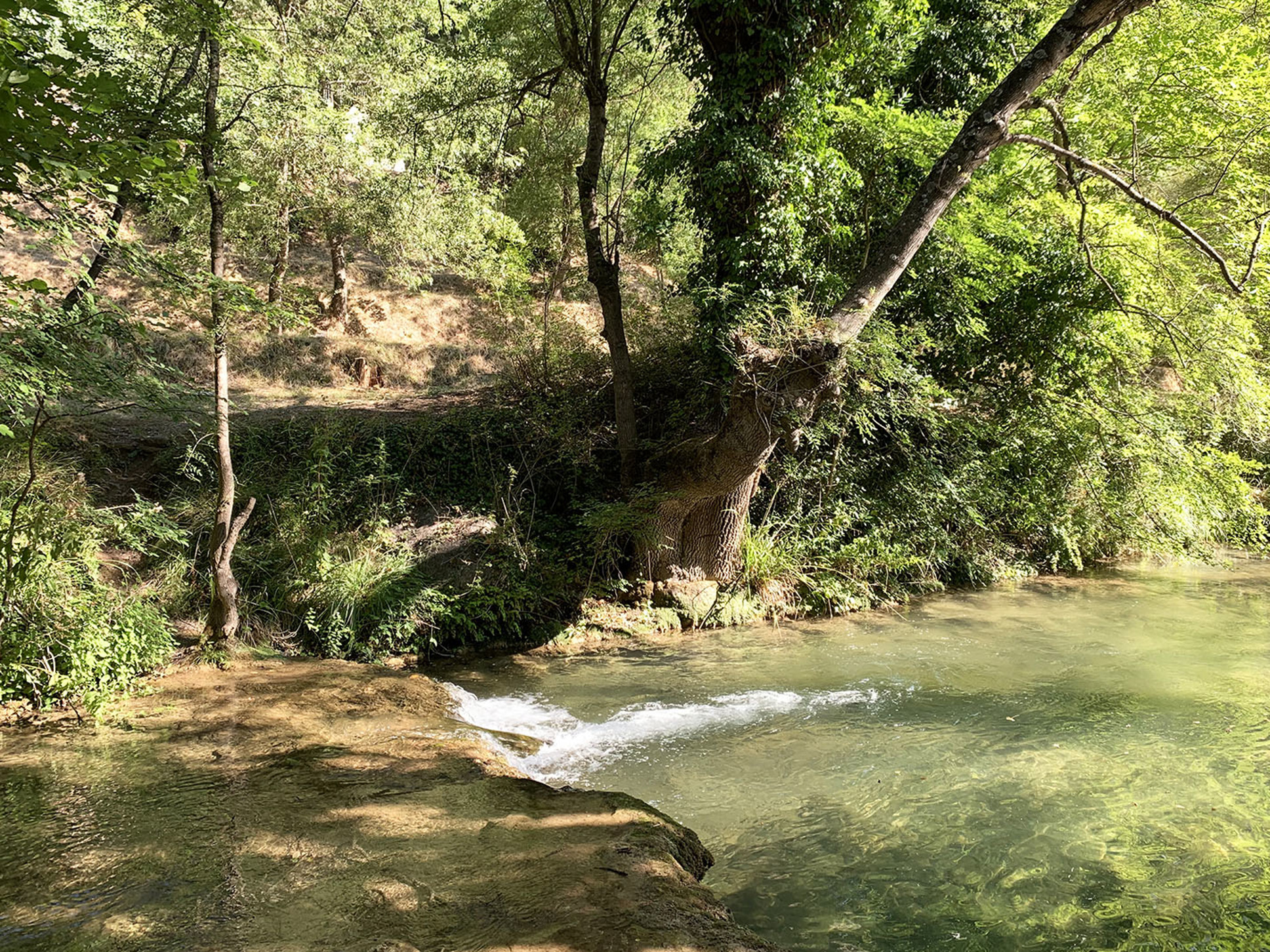 Het riviertje op het terrein komt van het 100m hoger gelegen dorpje Silons La Cascade met haar waterval van meer dan 40m hoogte. Erg leuk om hier eens te gaan kijken.