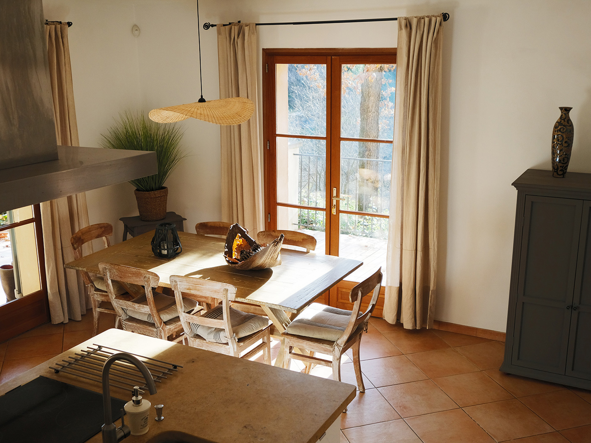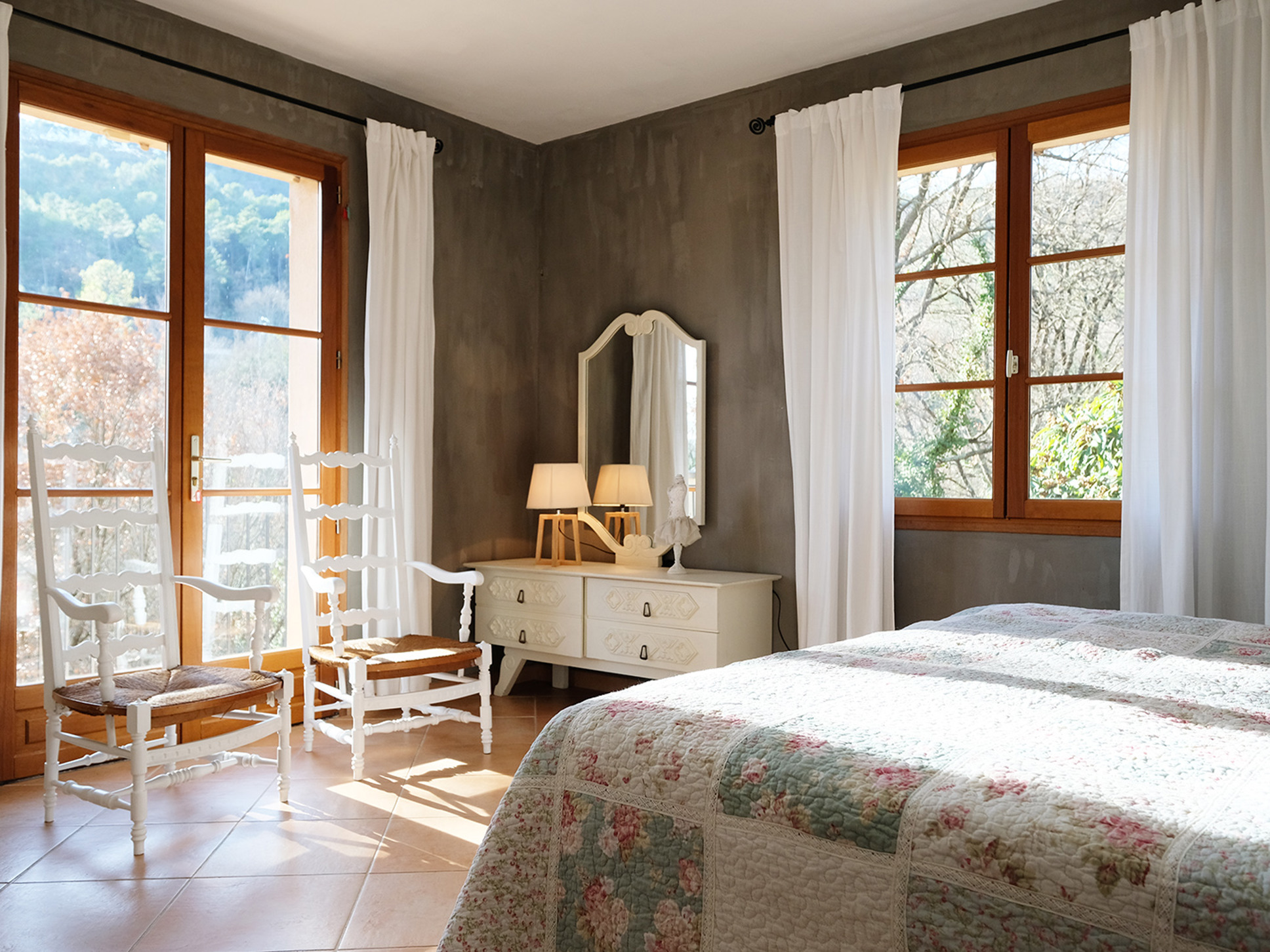De villa is gelegen op 7000 m2 privé grond, omgeven door Provençaalse bossen. Heel bijzonder vinden wij de aanwezigheid van het riviertje La Bresquee, grenzend aan het perceel. En ja, het is mogelijk te zwemmen in de rivier. Hoe leuk is dat? Makkelijk te bereiken door de tuin via diverse terrassen (restanques) naar beneden te lopen. Sowieso leuk om een rondje te lopen over het ruime grondstuk.