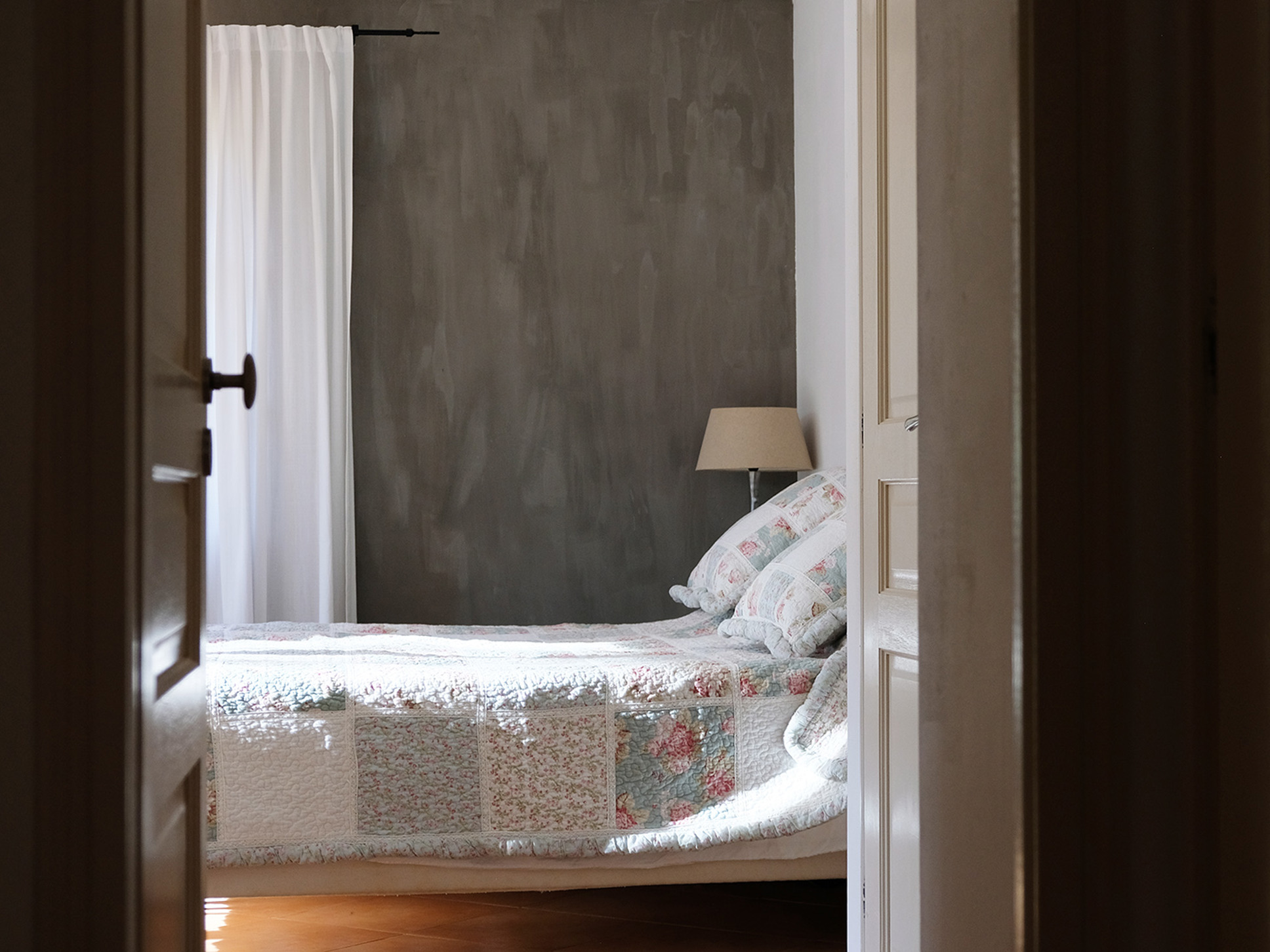Op de 1e verdieping liggen naast elkaar slaapkamers 3 en 4. Slaapkamer 3 is mogelijk de kinderkamer, te herkennen aan de speelgoed figuren op de kamer. Er staan 2 eenpersoonsbedden 90x200. De badkamer is ensuite (bad met WC). Slaapkamer 4 is een lichte kamer met zicht op de rivier en voorzien van een tweepersoonsbed (160x215) en een ensuite badkamer (W.C., douche). Op deze kamer staat het kinderbedje.