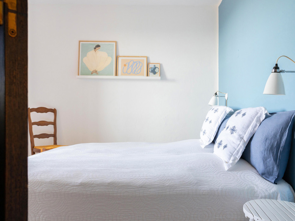 Slaapkamer 4 ligt eveneens op de eerste verdieping en heeft een tweepersoonsbed (180x200). De badkamer wordt gedeeld met slaapkamer 3 en 5.