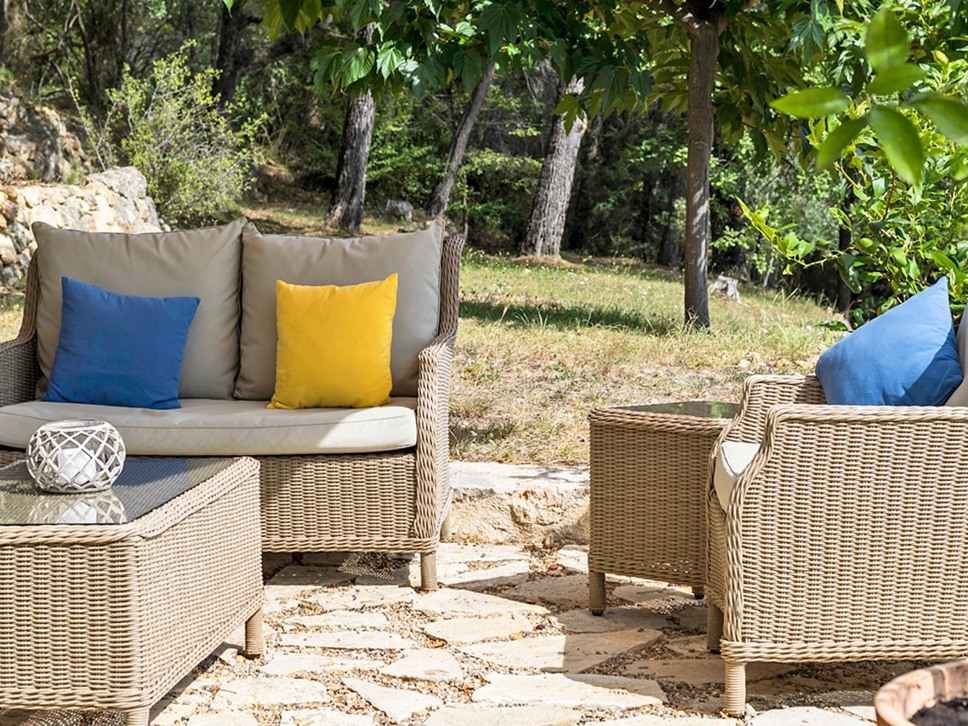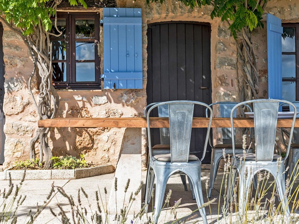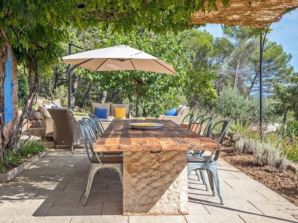Vanuit het dorp Seillans rijdt u in ca 5 minuten tussen de bossen door naar de Bastide. Het laatste stuk gaat over uw eigen oprit tussen de bomen en de natuurstenen 'restangues' door naar de Bastide. Het terras voor de Bastide is vergeven van bloemen en planten in borders en potten. op het terras voor de woning staat een grote eettafel waar u heerlijk kunt zitten en genieten van het uitzicht.