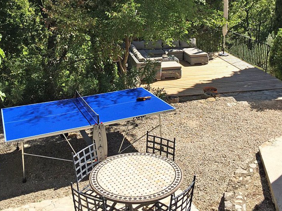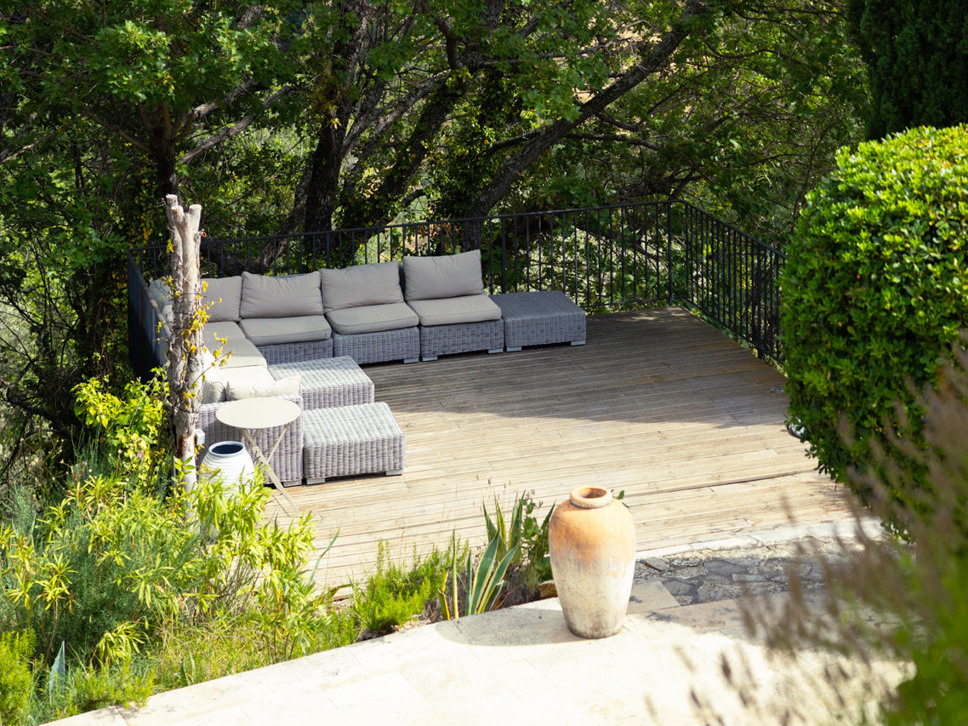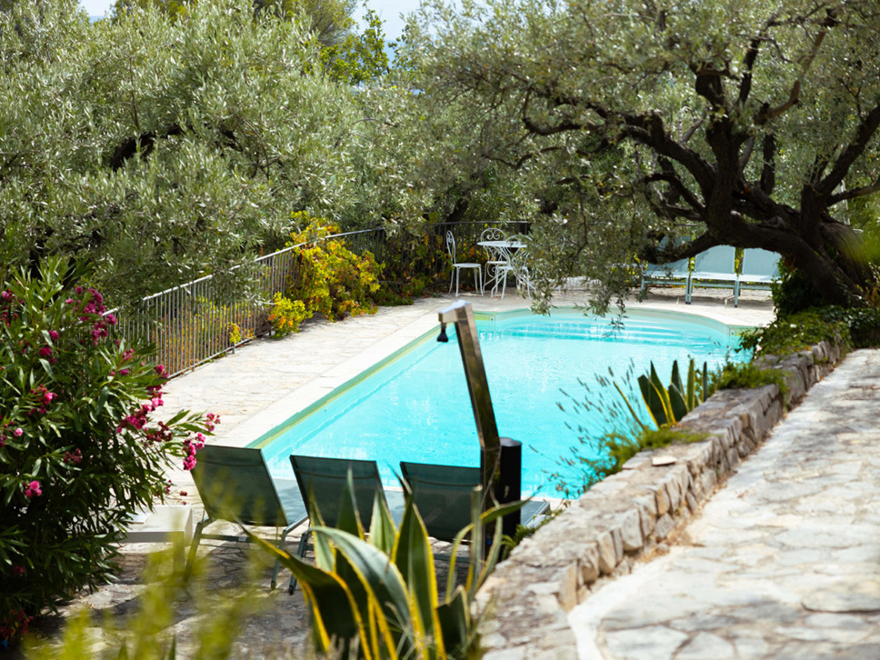 De villa is gelegen op slechts 2,5 kilometer van het centrum van het dorp. Het terrein is groot, ruim 1 hectare. In de mooi aangelegde tuin vindt u op verschillende niveaus olijfbomen, cypressen, lavendel en rozemarijn. Vanaf het terras en het zwembad heeft u een panoramisch zicht over de heuvels en bergen. Het zwembad ligt op een apart terras met olijfbomen, oleanders en druivenranken. De Bergerie staat op korte afstand van de woning en ademt één en al de Provençaalse sfeer.