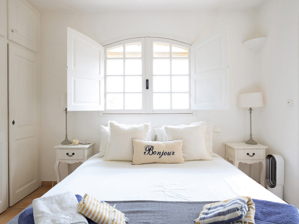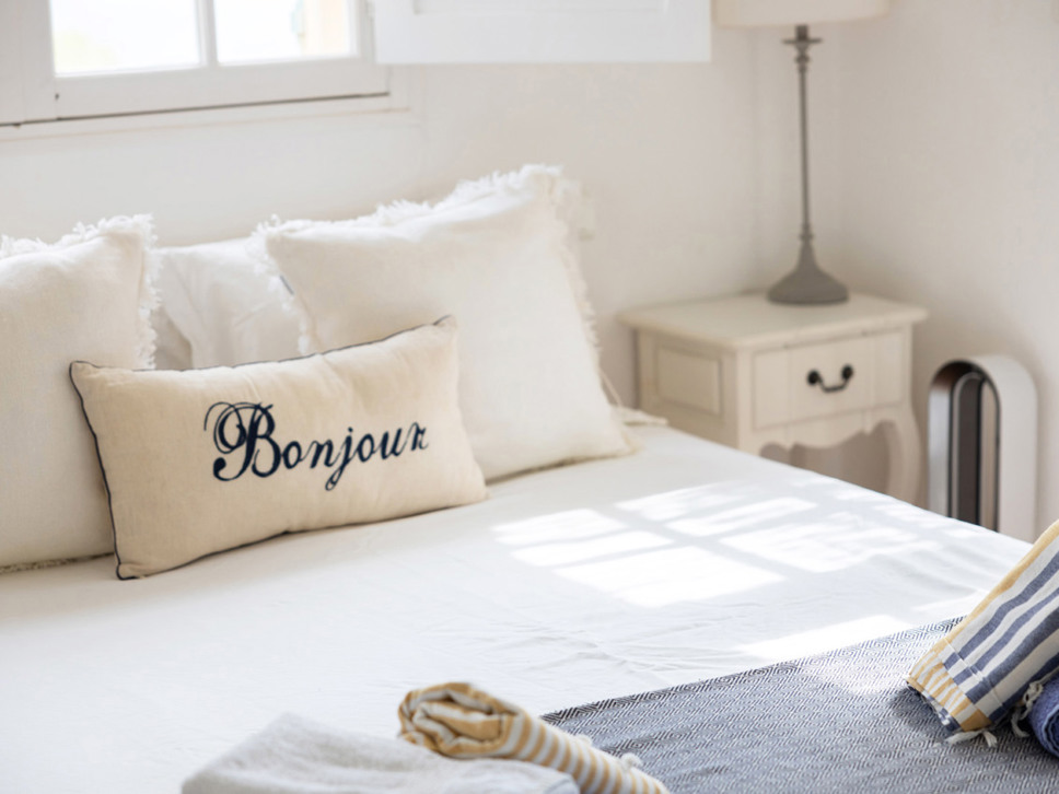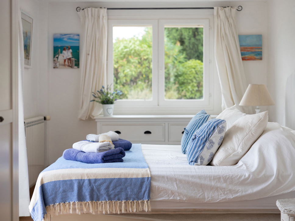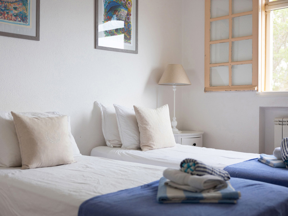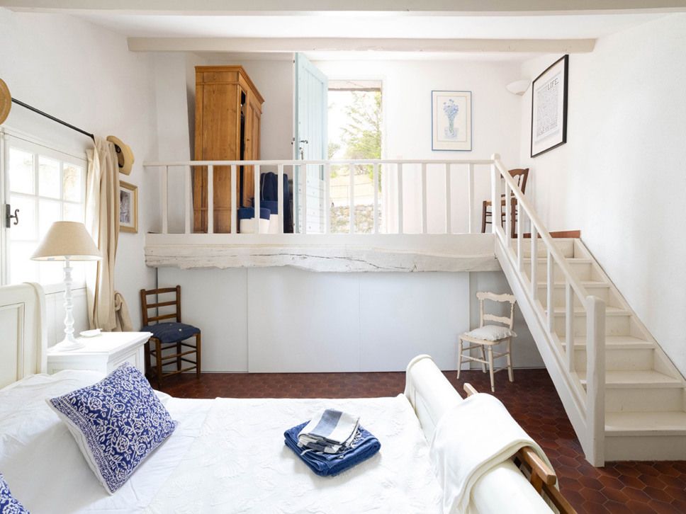 Slaapkamer 4 bevindt zich in de Bergerie, het gastenverblijf. Voor het huren van het gastenverblijf geldt een toeslag. (Zie hiervoor de prijslijst) Naast een slaapkamer met tweepersoonsbed (165x200) beschikt het gastenhuis over een keukentje en een zitkamer. Aangrenzend aan de slaapkamer vindt u een badkamer met douche (in het bad). Er is een separate toilet. Zonder het gastenverblijf is de villa geschikt voor 6 personen.
