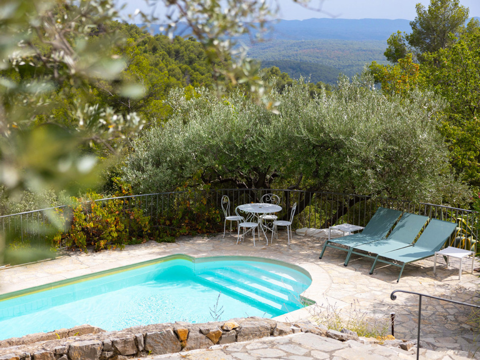 Comfortabele vrijstaande villa met privé zwembad en separaat gastenverblijf te Seillans, Provence. De villa is mooi landelijk gelegen en biedt panoramische uitzichten op het Esterel- en het Mauresgebergte. De villa ligt op een ruim terrein van 1 hectare met cypressen, eiken- en olijfbomen. Door de ligging op het terrein biedt de villa volledige privacy. De villa is geschikt voor 6 tot 8 personen.